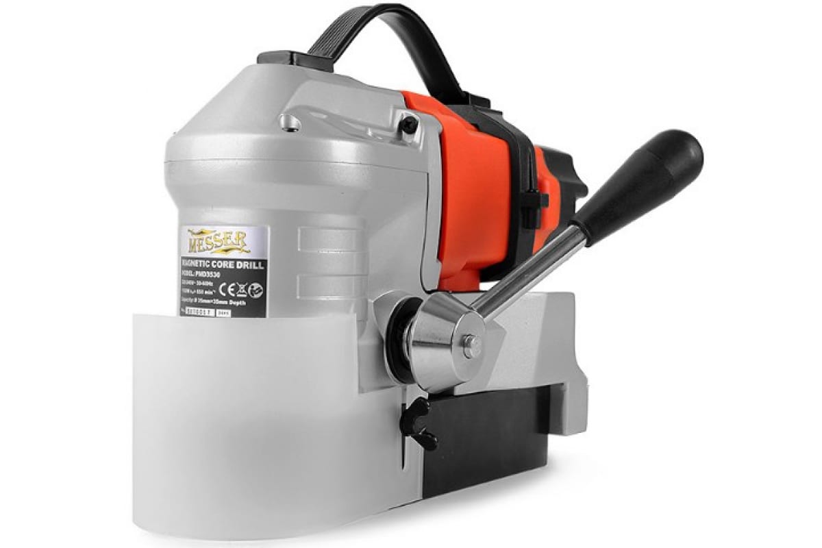 Станок на магнитной основе MESSER PMD3530 используется для сверления отверстий в условиях ограниченного пространства. Конструкция позволяет легко и просто переставлять рукоять подачи фрезы как на левую, так и на правую сторону корпуса. Магнит исключает смещение модели в процессе эксплуатации, что способствует аккуратному и качественному результату сверления. Встроенная светодиодная подсветка облегчает работу при недостаточном освещении помещения. В качестве оснастки используются сверла HSS и ТСТ (диаметр до 35 мм, длина до 35 мм).