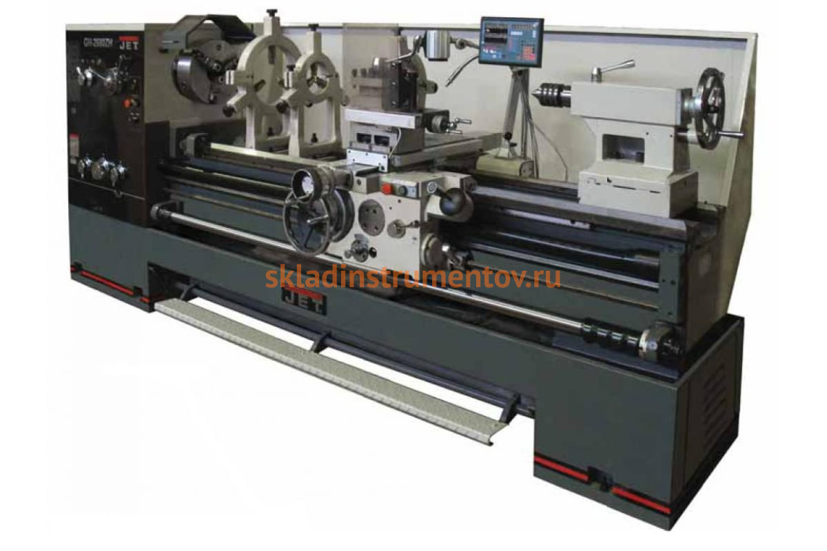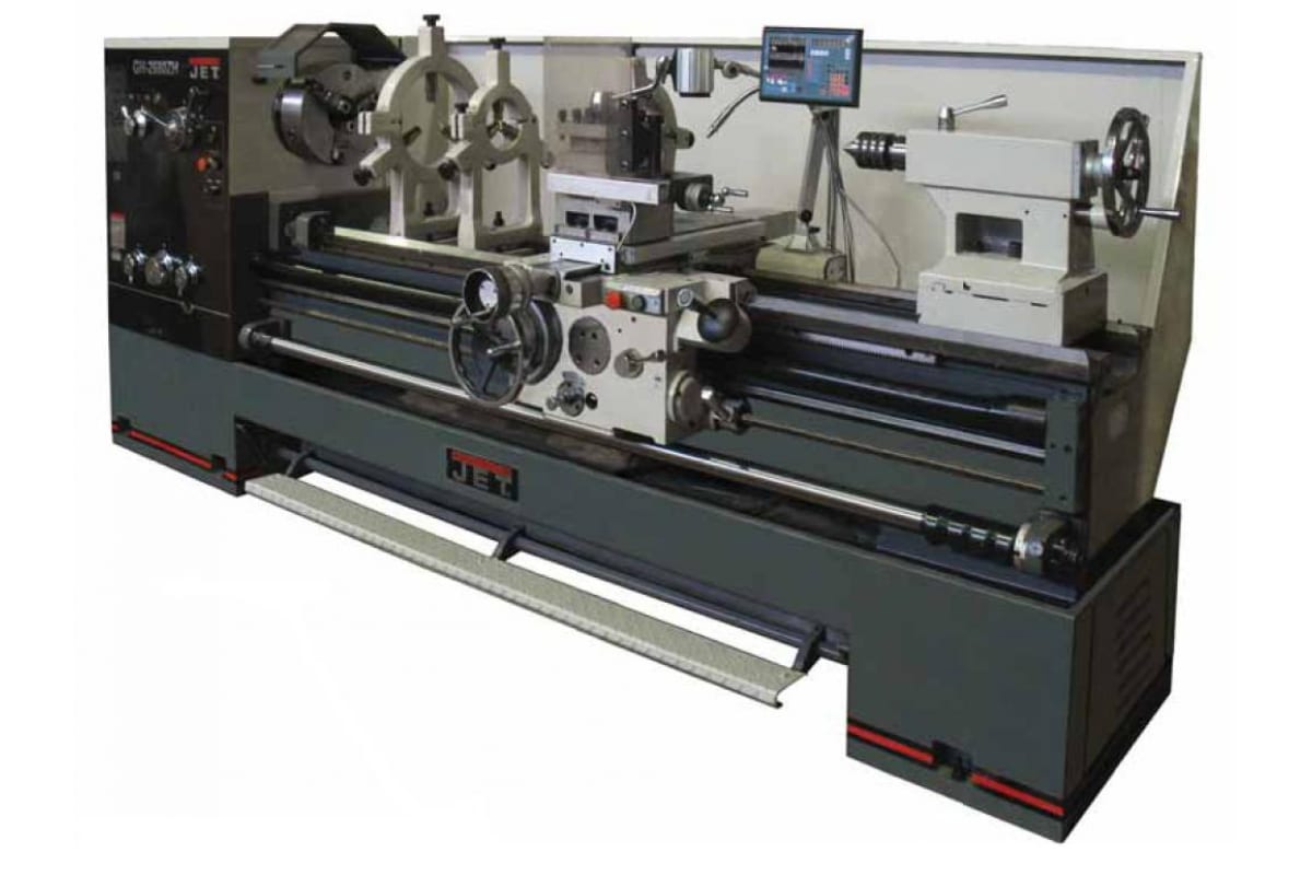 Токарно-винторезный станок Jet GH-2660 ZH DRO RFS – это мощное оборудование для профессиональных производств по обработке металлических и деревянных изделий. Эта линейка производителя отличается самой большой массивностью станков и очень большим запасом прочности.