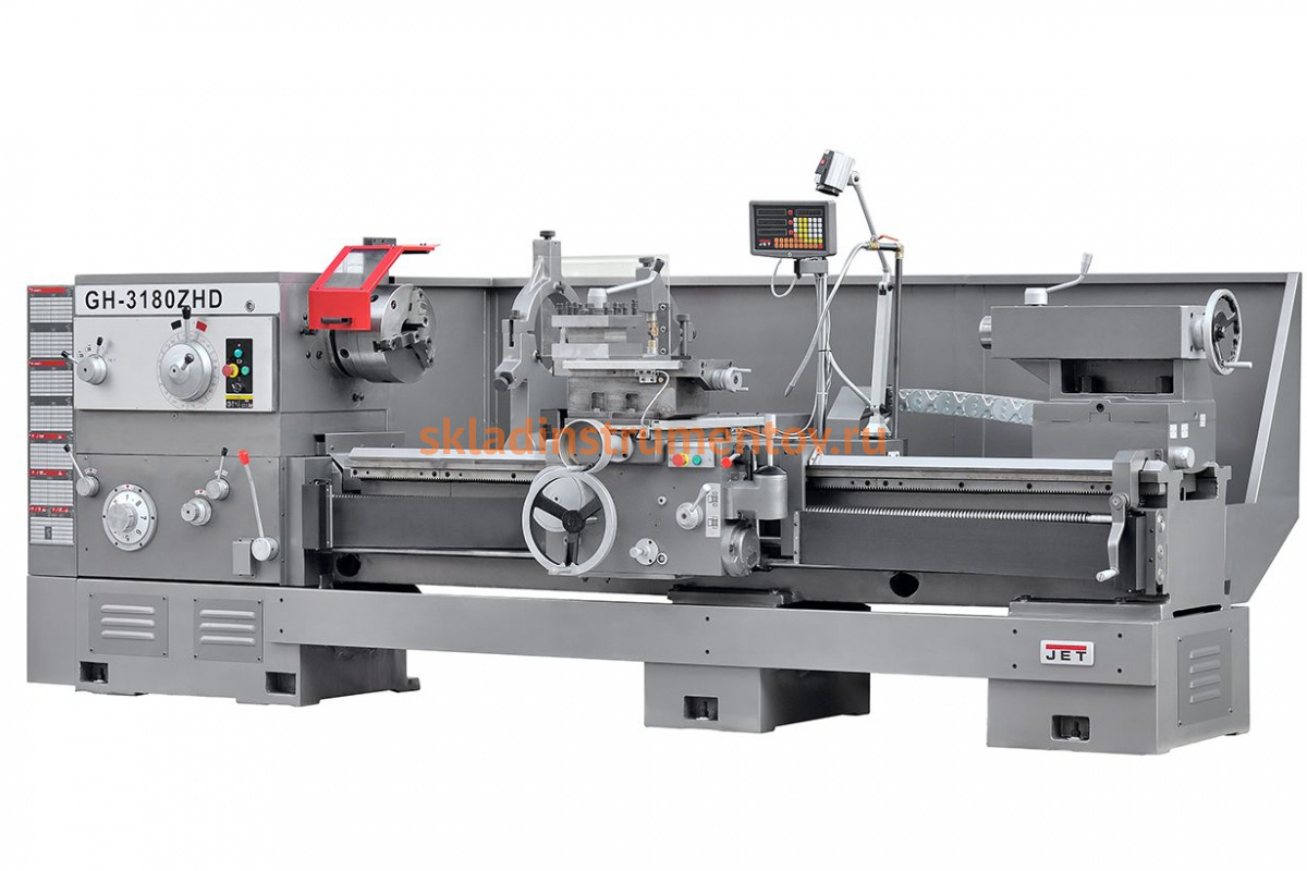 Токарный станок по металлу с системой ускоренного перемещение JET GH-3180 ZHD DRO RFS 50000846T - современное высокоточное оборудование инструментального класса. Модель предназначается для обтачивания габаритных деталей из сталей и цветных металлов, а также разнообразных сплавов. Станок позволяет нарезать резьбу любого типа - дюймовую, метрическую, модульную, питчевую.