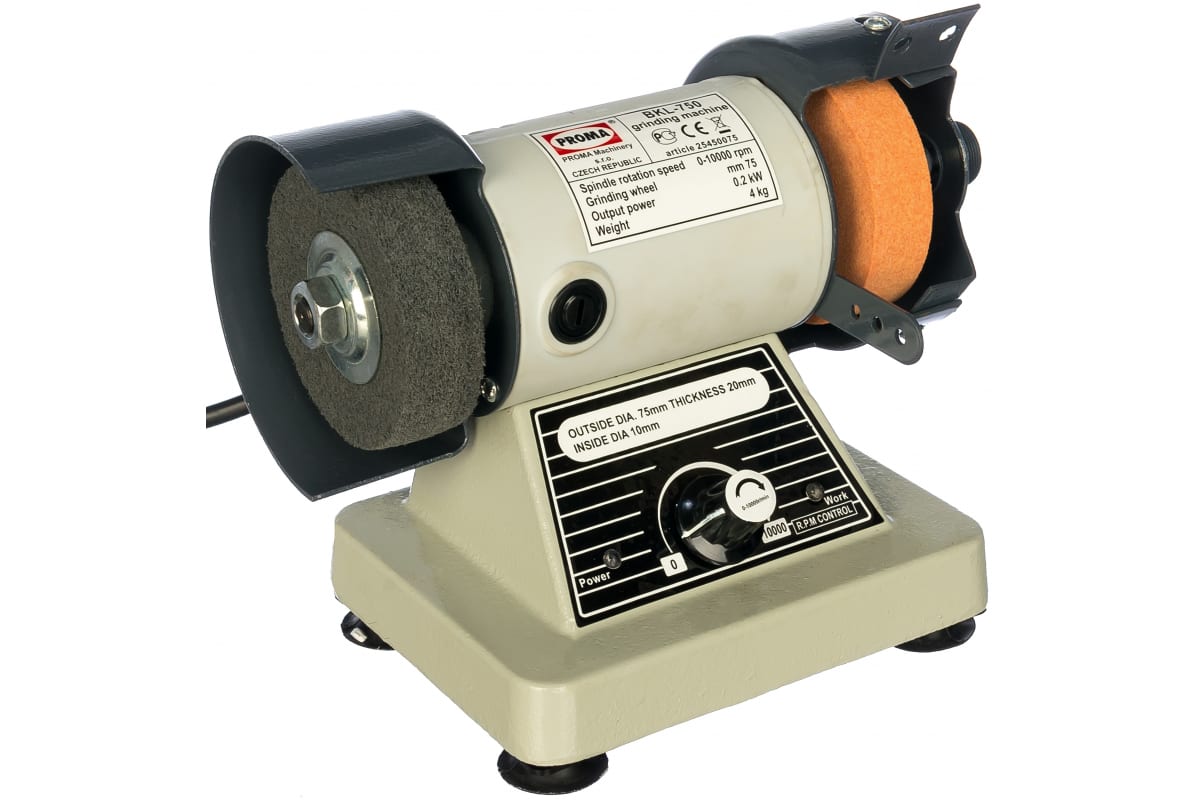 Заточной станок PROMA BKL-750 25450075 обеспечивает качественную шлифовку, полировку и обточку небольших предметов. В конструкцию входит гравер, что расширяет сферу применения устройства. Модель активно применяется в бытовой сфере и не требует от пользователя специальных навыков по заточке инструмента. Компактное приспособление не создает проблем при хранении. Прочный корпус способствует долгому сроку службы.