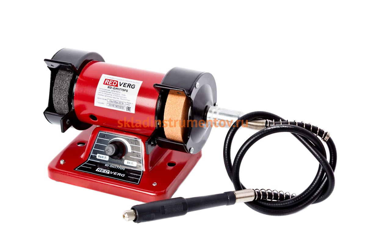 Заточной станок с гибким валом REDVERG RD-GM1775FS 6619734 применяется для выполнения работ по заточке, полированию, шлифованию и гравировке металлических заготовок и инструмента.