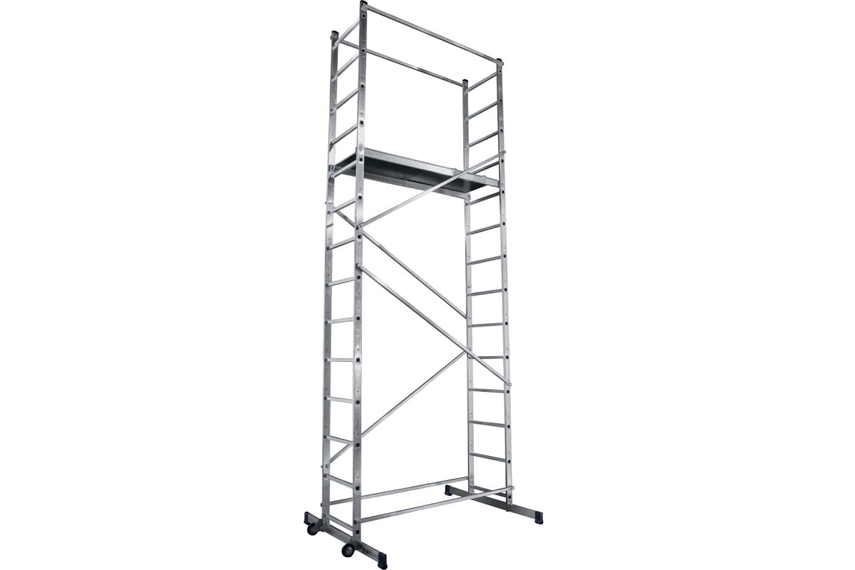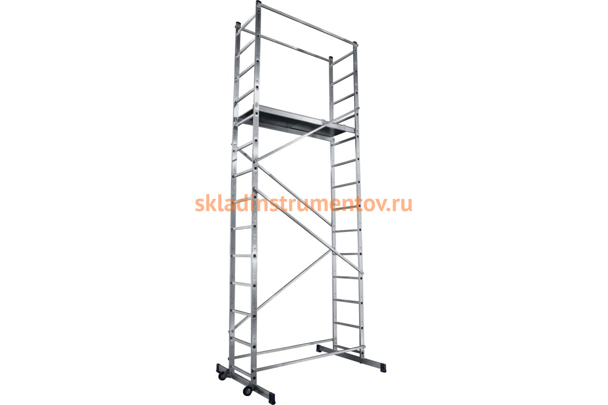 Алюминиевая вышка-тура СИБИН 5 метров 38840-5 широко применяется на строительных площадках для выполнения различных работ на высоте. Специальные соединения обеспечивают быструю сборку без инструмента.