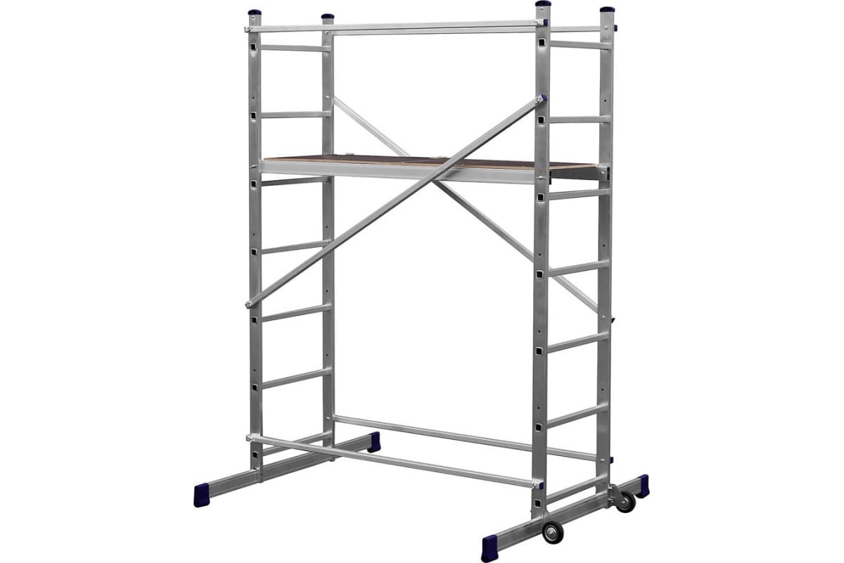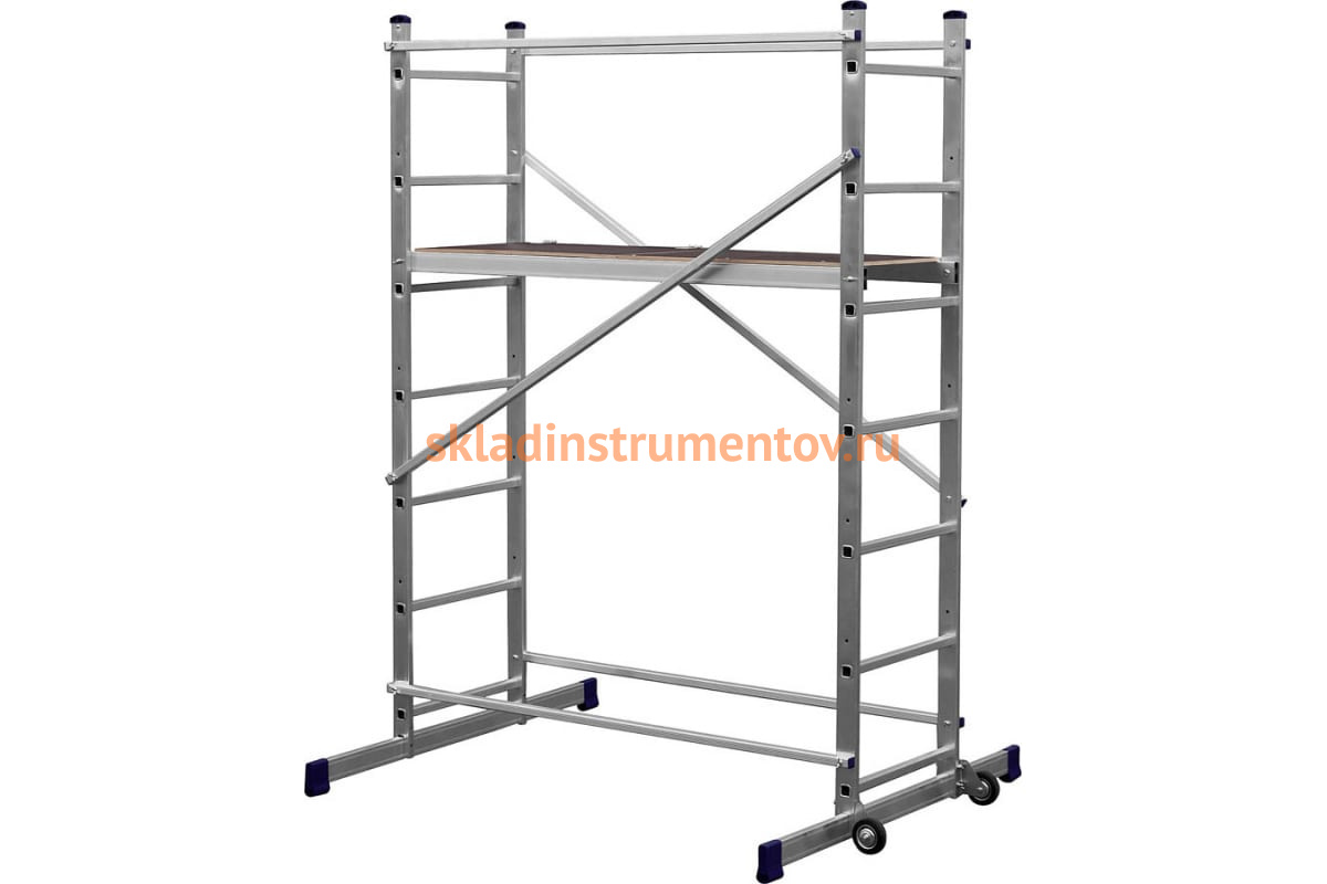 Алюминиевая вышка-тура (3 метра) СИБИН 38840-3 используется в процессе строительства и ремонта жилых и хозяйственных помещений, гаражей. Особенностью конструкции является возможность в короткий срок возводить или демонтировать вышку. Высота помоста поддается регулировке (от перекладины к перекладине), что делает возможным монтаж модели на лестнице или уклоне. Алюминиевый каркас обеспечивает вышке сочетание легкости и прочности. Размера рабочей платформы достаточно для нахождения на высоте человека и вспомогательного оборудования.