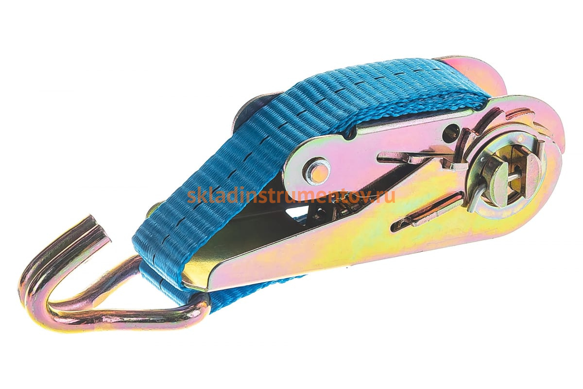 Стяжной ремень для крепления груза 5м 0,4/0,8 т РОМЕК 25.04.1.0 2000000002576 оснащается зубчатым рычагом для более надежного и качественного стягивания грузов между собой.