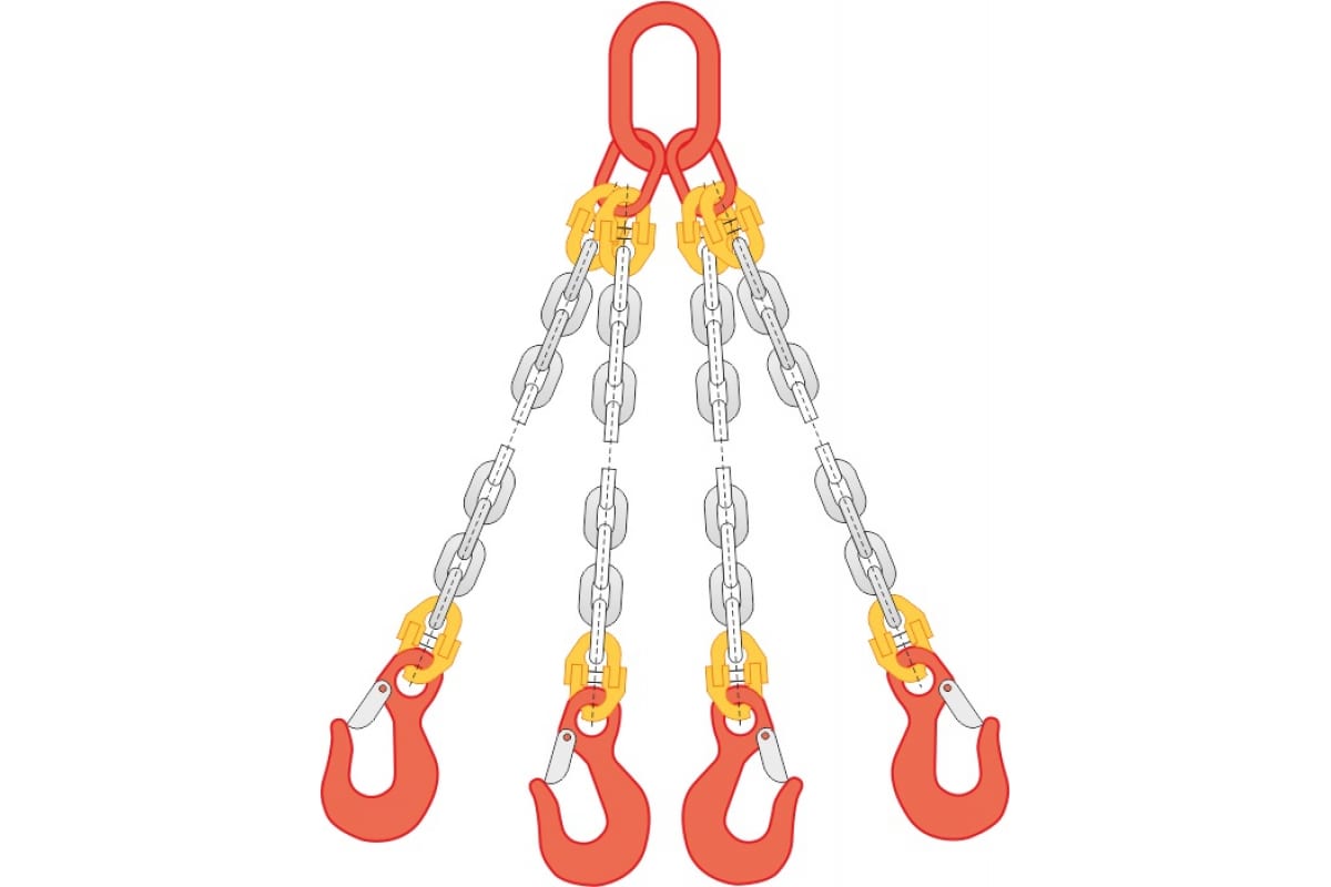 Строп РОМЕК 8-4СЦ - 3.15 /1 500/ 2000000040219 широко применяется во время погрузочно-разгрузочных работах. Модель имеет цепную конструкцию с четырьмя крюками, каждый из которых оснащен щеколдой для надежного удержания груза.