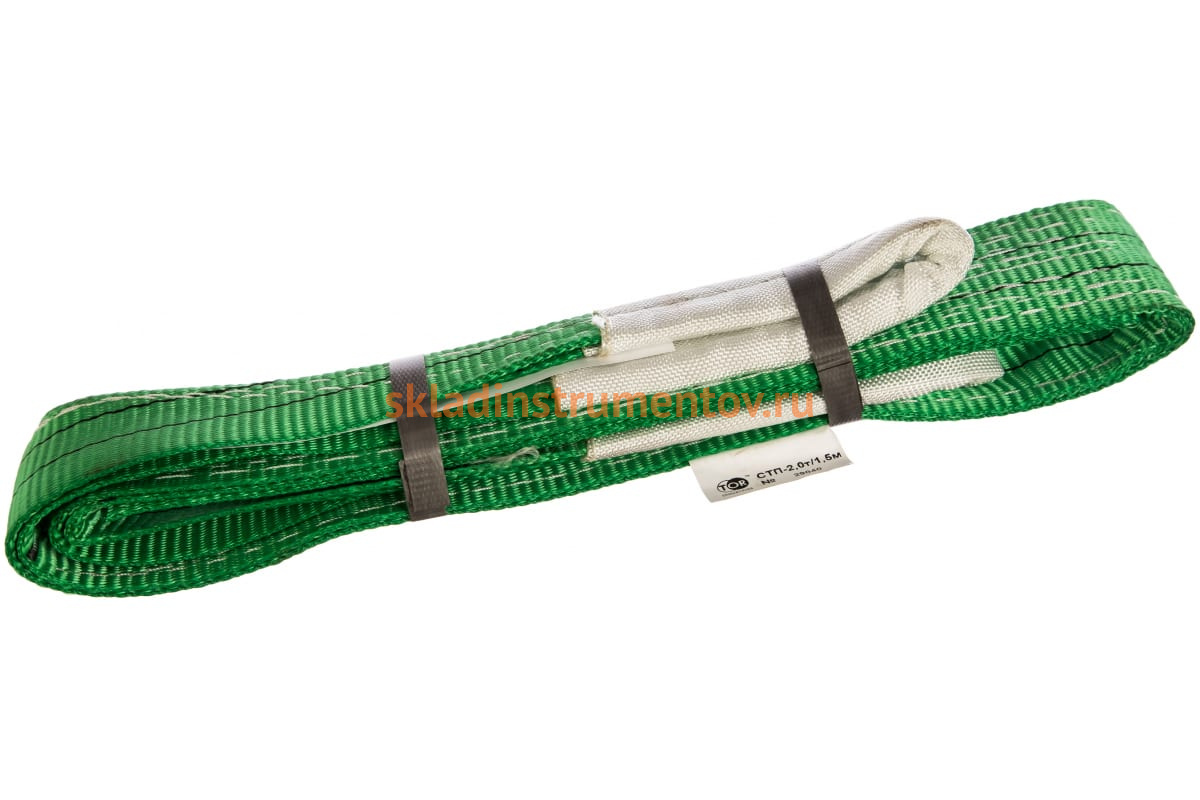 Строп СТП 2,0 т 1,5 м 60 мм Тор 11621515 изготовлен из полиэстра. Благодаря этому данная модель имеет малый вес и выдерживает нагрузку 2 тонны.