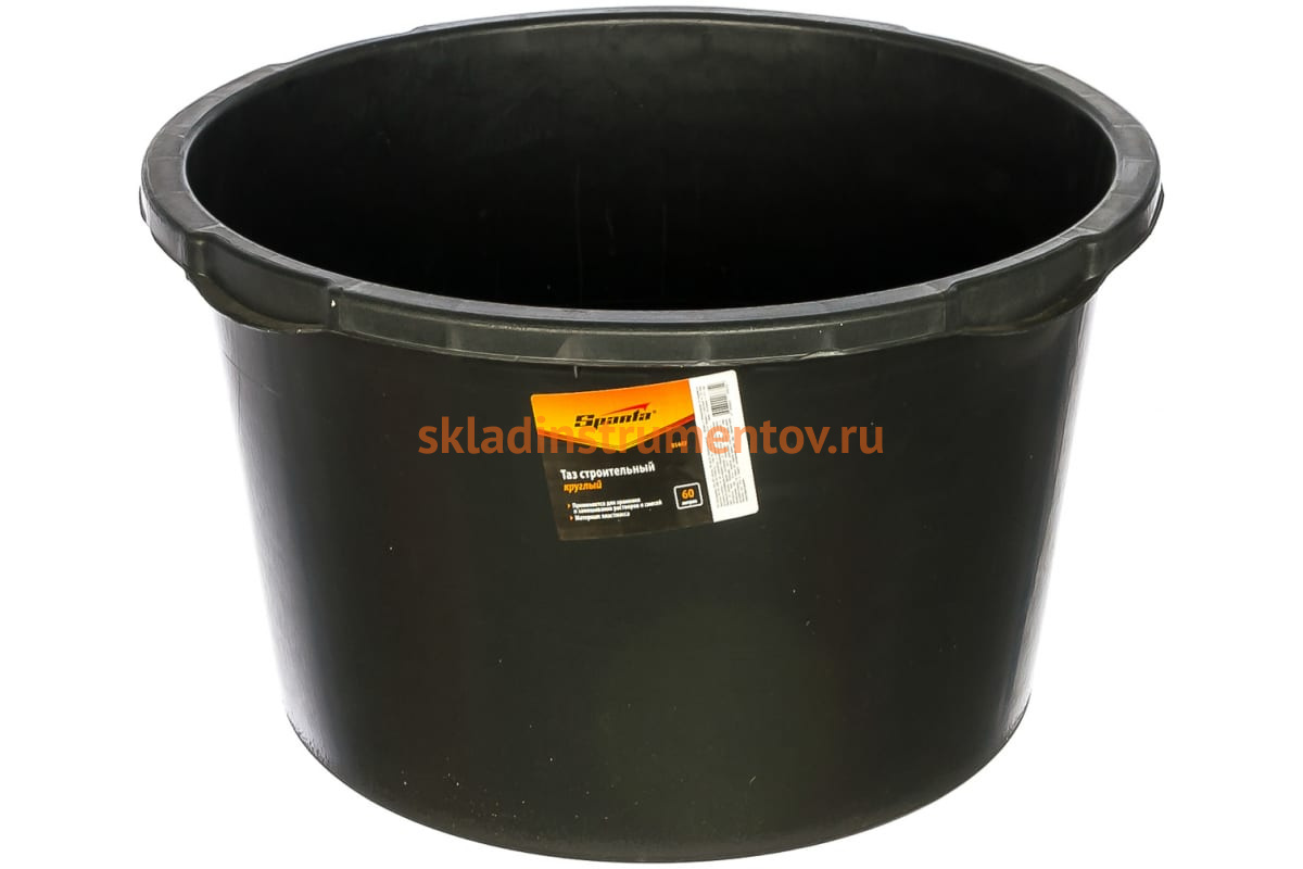 Круглый строительный таз 60 л Россия SPARTA 81447 - качественное оборудование, при помощи которого можно быстрее проводить строительно-отделочные работы в отсутствие бетоносмесителя.