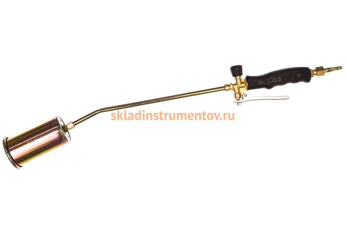 Кровельная горелка 550 мм (вентиль, рычаг) КЕДР ГВ-500 1190002 функционирует в диапазоне давления газа от 10 до 20 атмосфер. Изделие требуется для проведения кровельных работ, чтобы застелить: