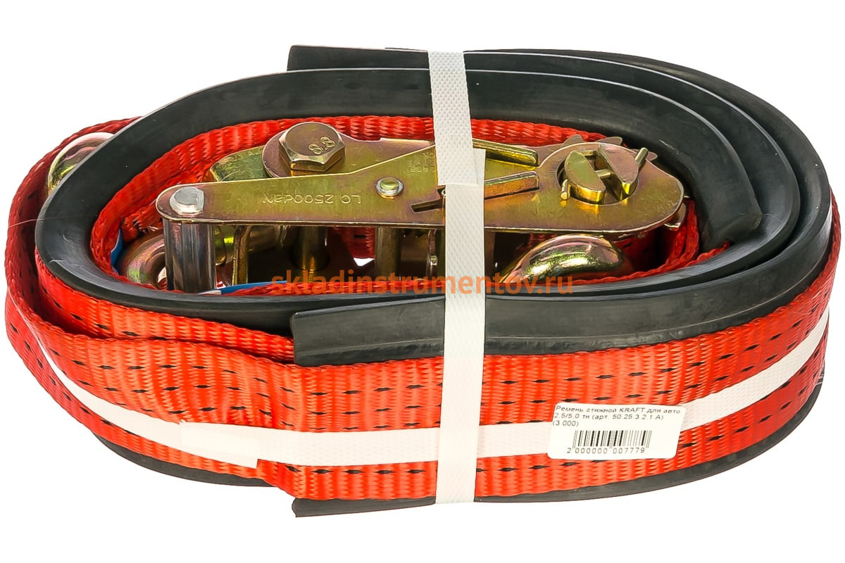 Стяжной ремень для авто 3м, 2,5/5,0 т РОМЕК 50.25.3.2.1.А 2000000007779 находит применение при транспортировке грузов любой сложности на легковых автомобилях, в прицепах или внутри грузовиков.