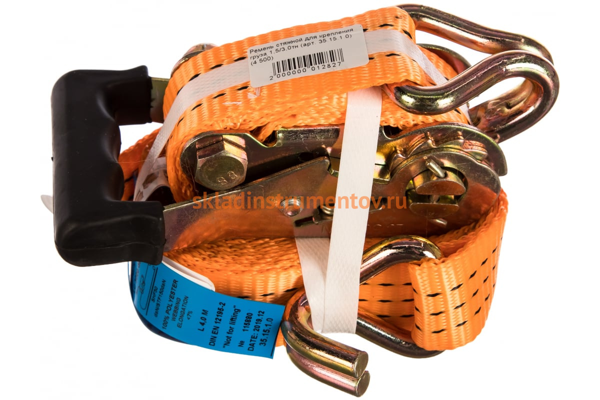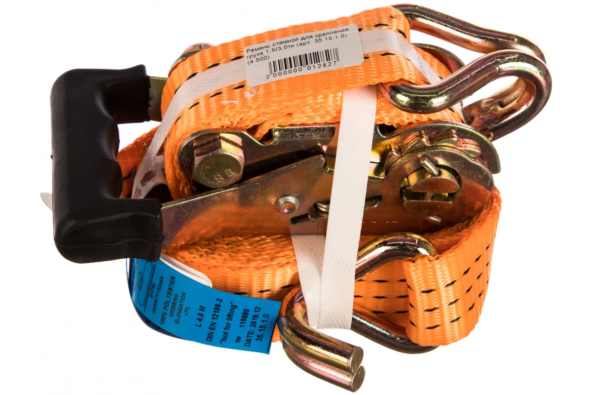 Стяжной ремень для крепления груза 4,5м, 1,5/3,0 т РОМЕК 35.15.1.0 2000000012827 находит применение при грузоперевозках.