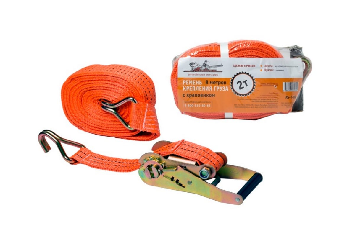 Ремень крепления груза с храповиком (8 м, 2 т) Airline AS-T-06 находит применение в сфере перевозок. Полиэфирная нить ленты отличается долгим сроком службы благодаря устойчивости к истиранию, морозу, жидкостям (в том числе и техническим). Стальной храповой механизм гарантирует стабильное натяжение ленты. Крюк изготавливается из стали.