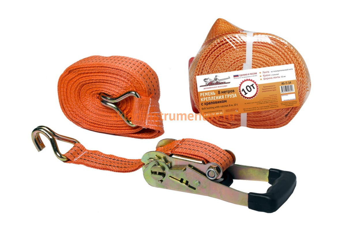 Ремень крепления груза с храповиком 8 м, 10 т Airline AS-T-14 способен работать при экстремальных условиях и выдерживать до 10 тонн нагрузки. Лента изготовлена из полипропиленового тканного материала и отличается морозо- и влагостойкостью, а также устойчивостью к техническим жидкостям, истиранию и различным химическим веществам. Ремень оборудован стальными крюками и храповым механизмом, который предотвращает ослабление ремня. Рельефная рукоятка обеспечивает удобство эксплуатации устройства.