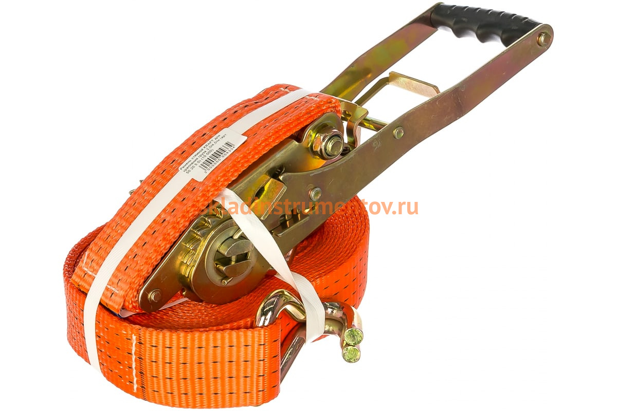 Стяжной ремень для крепления груза 10м, 2,0/4,0 т РОМЕК 50.20.5.0 2000000004334 - простое и надежное оборудование, при помощи которого можно эффективно стянуть груз или закрепить его внутри кузова.