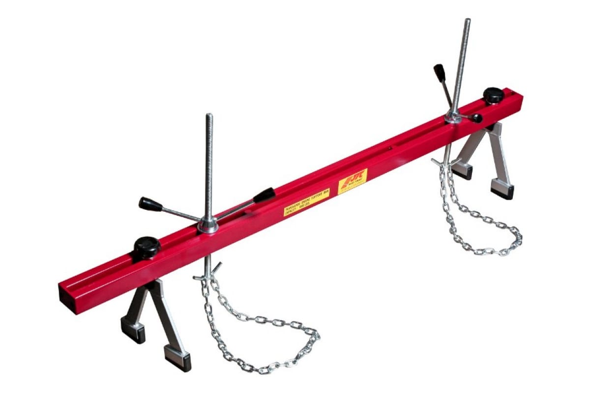 Траверса с двумя цепями для подвески двигателя JTC JTC-ES416 имеет две регулируемые (по высоте и ширине) опоры специальной формы, которые обеспечивают устойчивость и большую площадь соприкосновения. Шпильки с цепями служат для настройки комфортного рабочего положения. Специальное покрытие модели надежно защищает устройство от воздействия коррозии. Плетение цепей исключает разрывы и выдерживает нагрузку до 500 кг. Конструкция оборудования позволяет не извлекать двигатель полностью из моторного отсека.