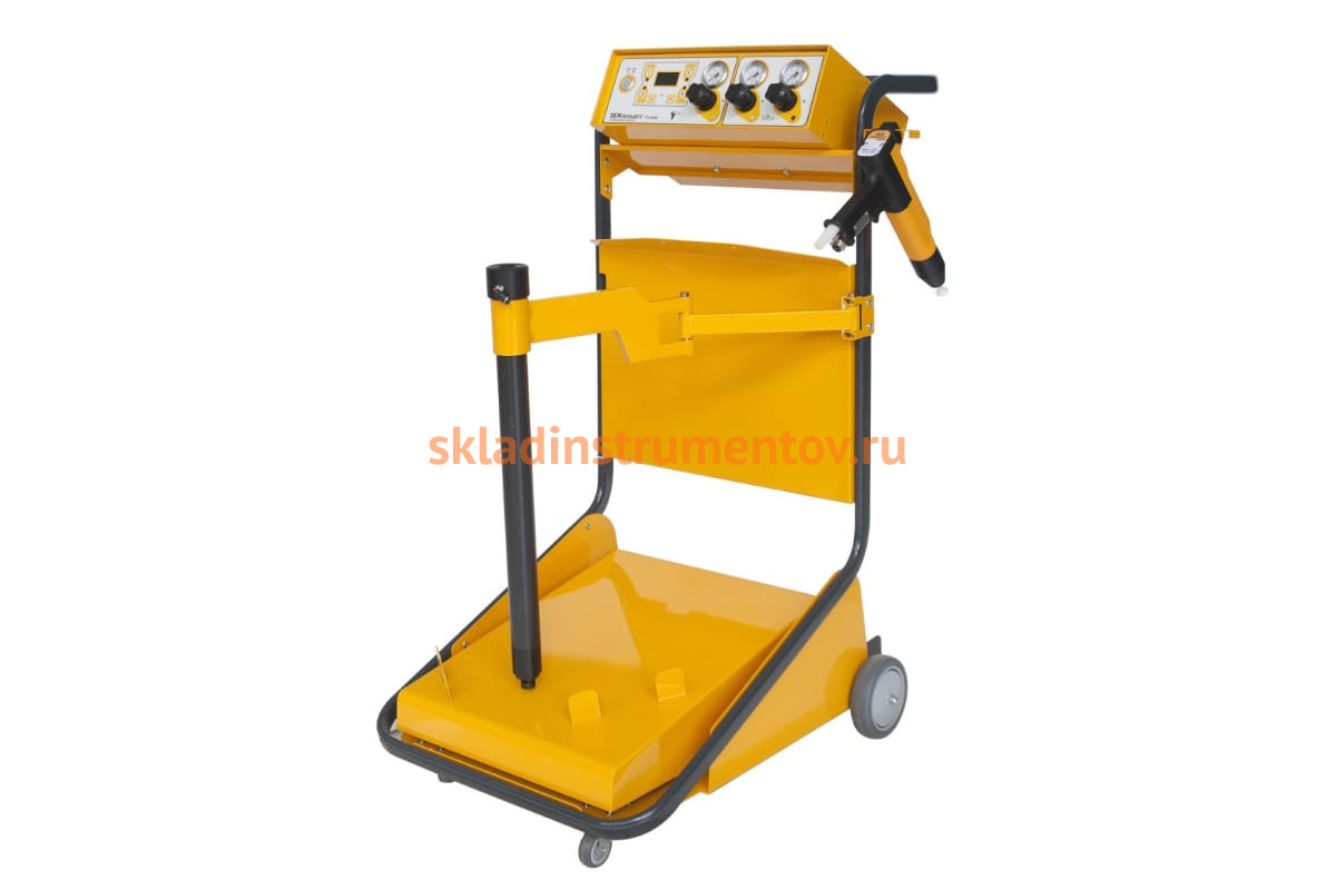 Модель комплектуется вибростолом (мультиколором). Установка может работать с трибостатическим пистолетом (Tribo-заряд).