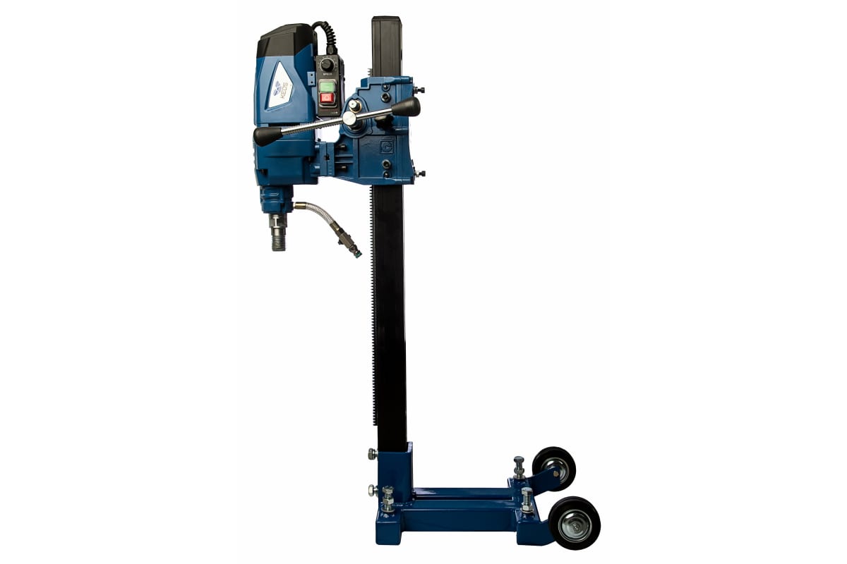 Комплект для алмазного бурения (прямой штатив) KEOS KS-250 set уверенно работает с такими материалами, как бетон, железобетон и кирпич. Производительный и мощный двигатель закрывается корпусом из металла, что исключает риск его случайного механического повреждения на рабочей площадке. Пузырьковые уровни дают возможность устанавливать комплект максимально ровно.