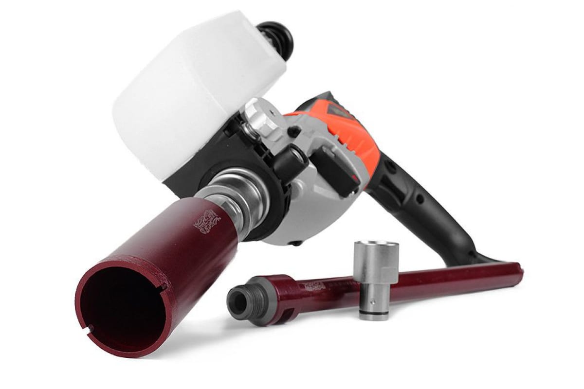 Дрель алмазного бурения по керамической плитке и натуральному камню MESSER TC402 используется для изготовления точных и ровных отверстий в натуральном камне или керамической плитке. Она имеет два типа крепления - быстросъемный коннектор с внутренней резьбой 1/2 и быстросъемный коннектор с наружной резьбой М14. Инструмент рассчитан на использование с коронками, имеющими диаметр 5-40 мм. Для дополнительного удобства при работе предусмотрена съемная боковая рукоять.