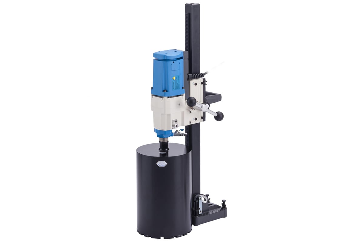 Установка алмазного бурения с наклонной станиной L=1000 мм, быстросъемной пластиной и двигатель R1722 SHIBUYA TS-252 AB52 51247 предназначается для быстрого и эффективного высверливания отверстий в бетоне или кирпиче. Агрегат оснащается двухскоростным редуктором, скорость шпинделя составляет 800 или 1300 оборотов в минуту при номинальной нагрузке. Конструкция стойки позволяет работать под углом до 45 градусов, что значительно расширяет возможности эксплуатации.