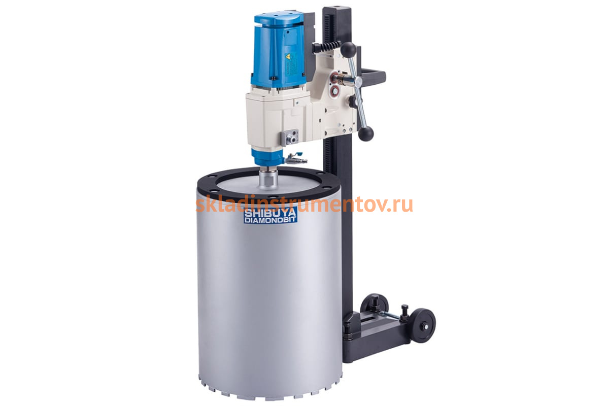 Установка алмазного бурения c ненаклонной станиной L=1000 мм, быстросъемной пластиной и двигателем R2221 SHIBUYA TS-402 51248 представляет собой современное строительное оборудование с мощным однофазным двигателем. Благодаря транспортировочным колесам возможно быстрое и легкое перемещение изделия с одного места на другое. Модель позволяет высверливать отверстия в бетоне диаметром до 400 мм.