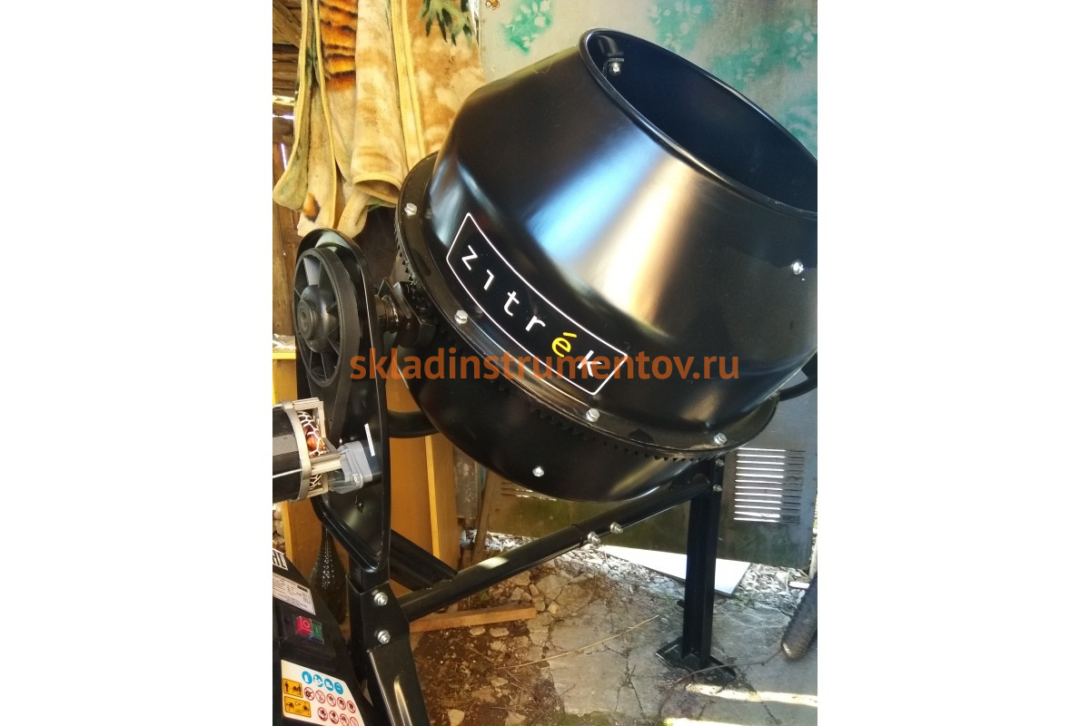 Бетоносмеситель Zitrek Z200 024-0984 подходит для частного применения. Объем готового раствора составляет 150 литров за один замес. Двигатель установки покрывается специальным кожухом для защиты от случайных механических повреждений. Установка оснащается круглым рычагом значительного размера, что позволяет подавать раствор в рабочую зону дозировано.