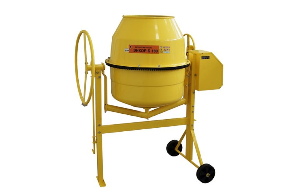 Бетоносмеситель Энкор Б180 56260 предназначен для приготовления строительных смесей: бетона, известкового раствора, штукатурки.