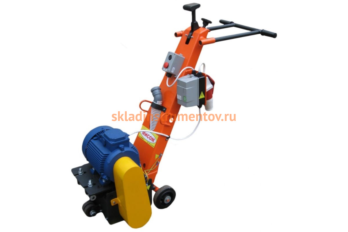 Фрезеровальная машина МИСОМ СО 410Ш РБ J01330000041000 - мощное строительное оборудование для шлифовки различных поверхностей. На барабан устанавливаются шлифовальные ламели в количестве 120 шт., которые закрепляются шайбами - 240 шт.( ламели и шайбы приобретаются отдельно). Корпус машины покрывается краской для защиты от коррозии.
