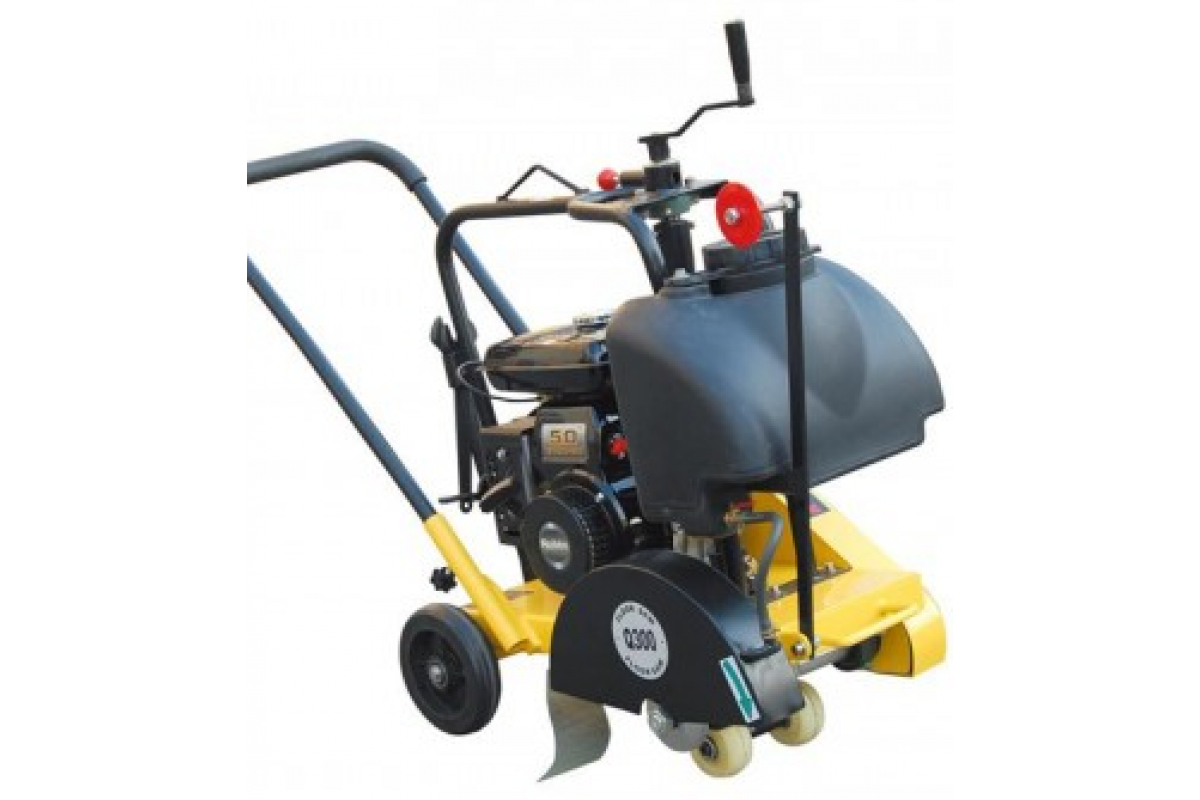Модель отличается наличием указателя линии реза и регулятора глубины. Транспортировочные колеса облегчают перемещение оборудования внутри рабочей зоны. Своевременная подача воды уменьшает пылеобразование и охлаждает пильный диск.