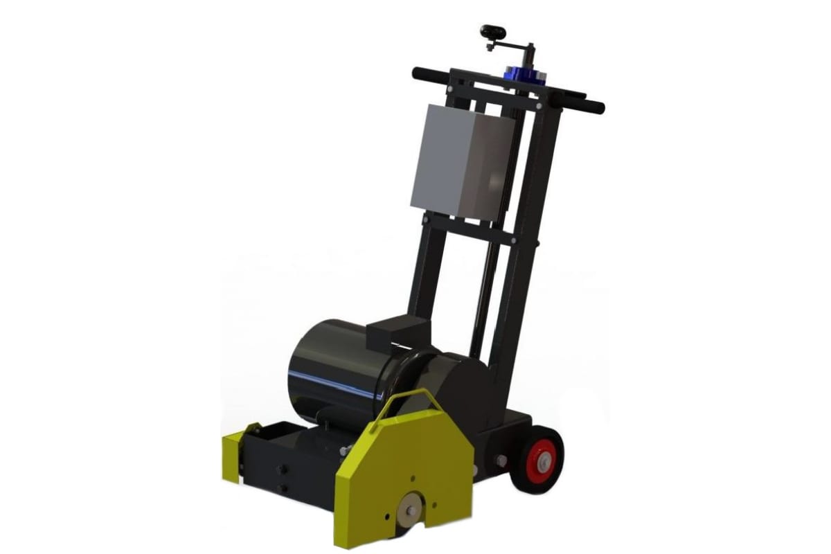 Нарезчик кровли МИСОМ СО 349ЭK работает от сети с напряжением 380 В. В качестве оснастки применяются кровельные фрезы диаметром 350 мм с посадочным отверстием 25.4 мм. Значительный вес модели гарантирует ее устойчивость и стабильное давление режущего элемента на поверхность. Сфера применения агрегата - капитальный ремонт крыши, строительство промышленных и гражданских зданий. Прочная рама оборудования отличается устойчивостью к ударам. Частота вращения вала составляет 2820 об/мин, частота вращения фрезы - 3000 об/мин.