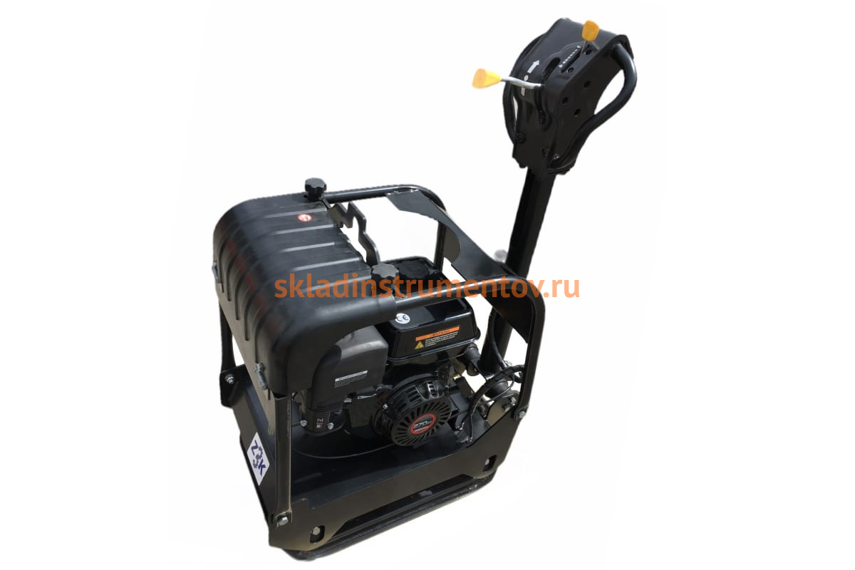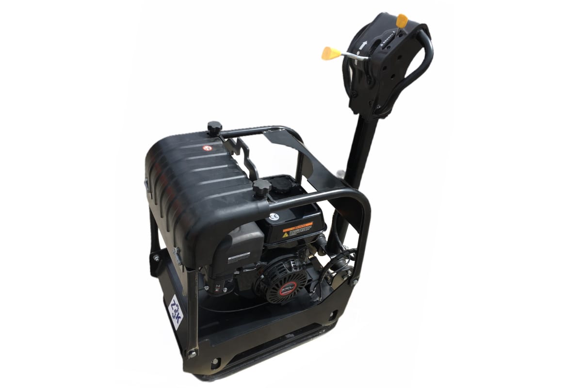 Виброплита оснащена удобной ручкой, тележкой с прочным металлическим корпусом.