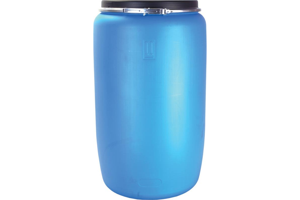 Бочка с крышкой на обруче ТАРА п/э, синяя, 227о 08289 служит для хранения различных жидкостей.