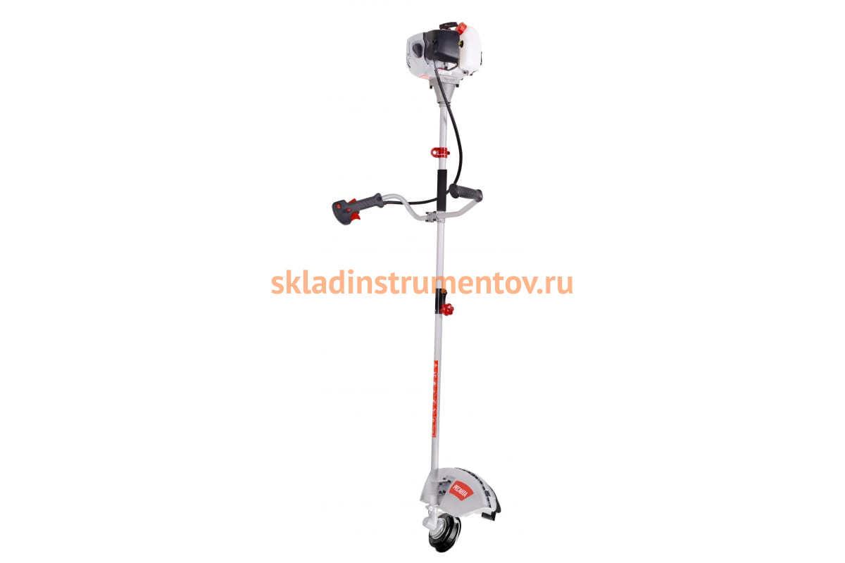 Бензиновый триммер этой серии безопасен в работе благодаря защитному кожуху, антивибрационной системе и блокиратору курка газа.