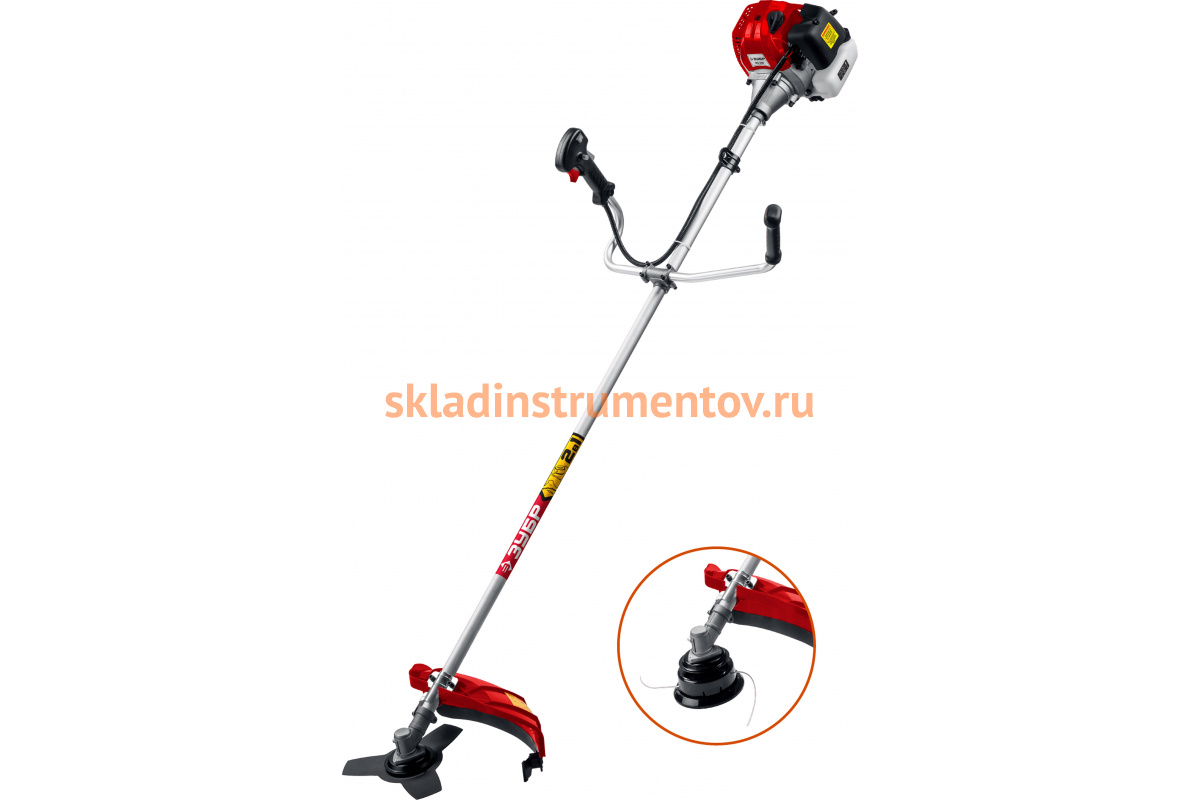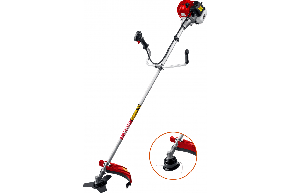Бензокоса Зубр КРБ-1000 поможет подстричь траву, удалить одеревенелую поросль или подровнять кустарник около дома.