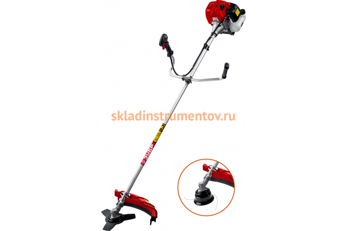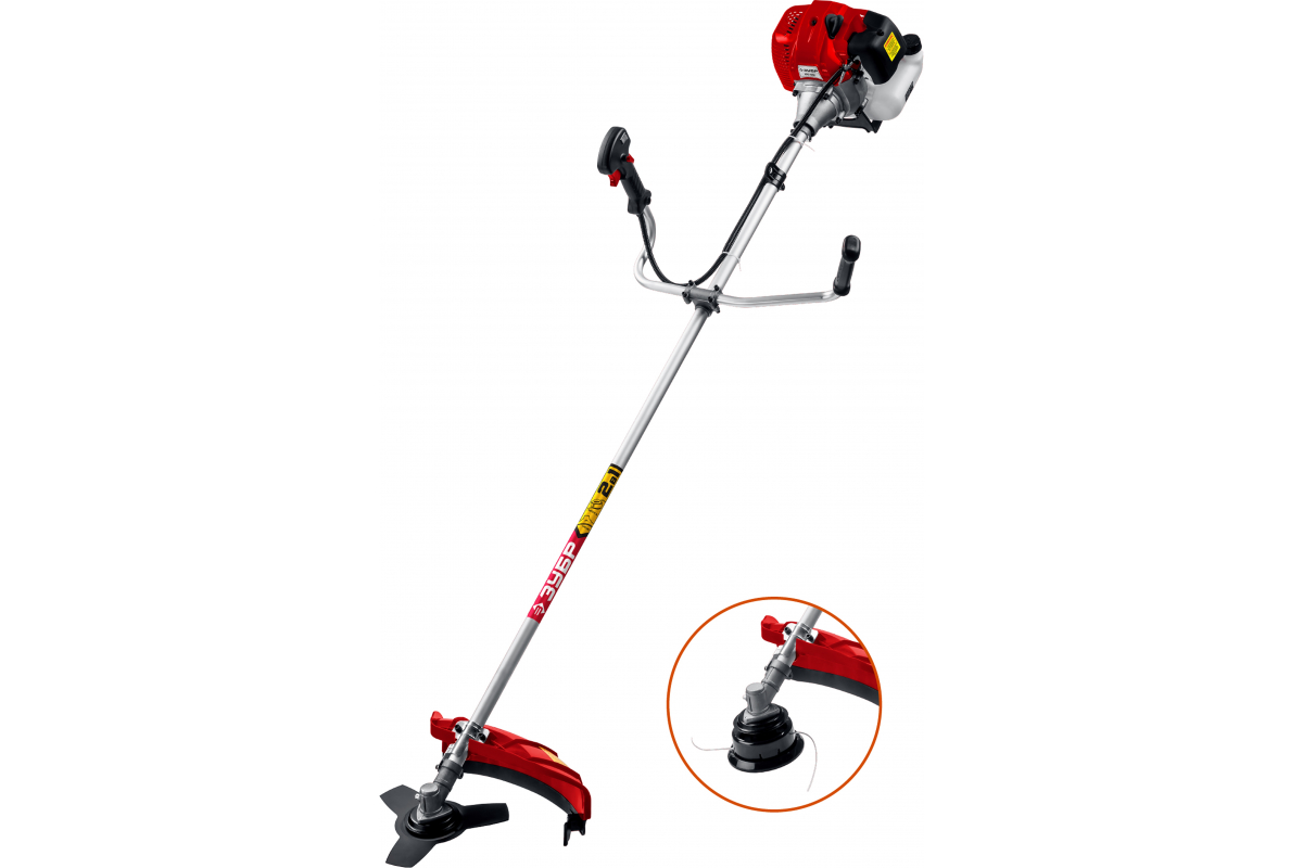 Бензокоса Зубр КРБ-1300 поможет подстричь траву, удалить одеревенелую поросль или подровнять кустарник около дома.