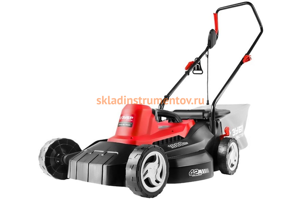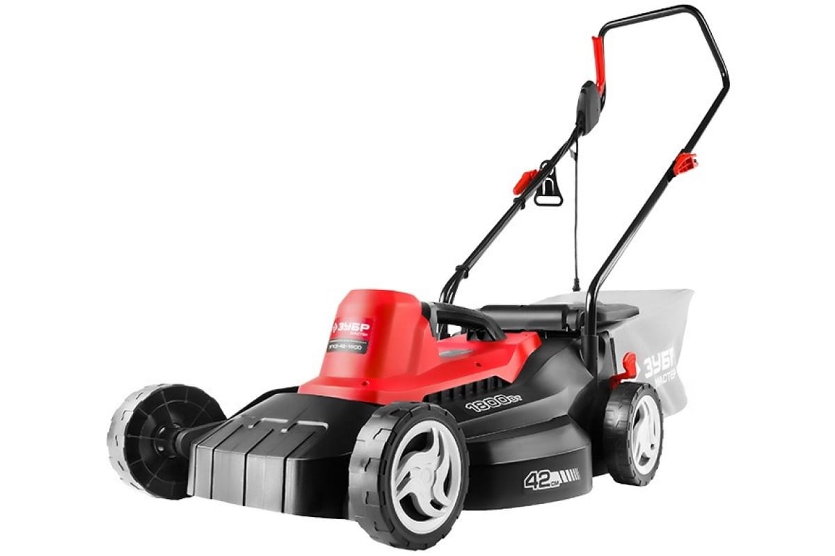 Роторная электрическая газонокосилка Зубр ЗГКЭ-42-1800 проста в эксплуатации и обслуживании. Оснащена ножом специальной формы. Ширина кошения составляет 42 см. Срезанная трава попадает в вместительный тканевый мешок. Рукоятка складывается и регулируется по высоте. Можно установить пять различных высот скашивания от 25 до 75 мм. Большие колеса обеспечивают простоту перемещения косилки по неровной поверхности.