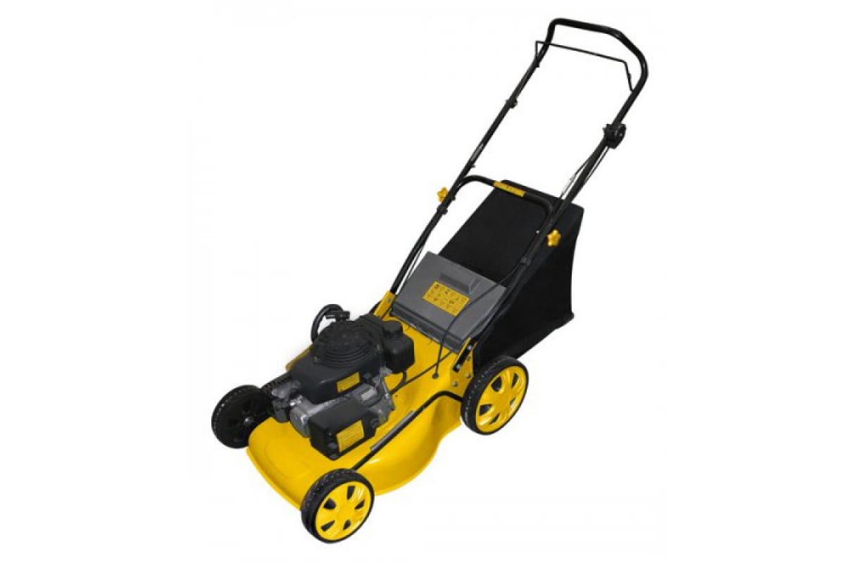 Бензиновая несамоходная газонокосилка Энкор - ГКБ 3.5/46 56501 - инструмент, предназначенный для обработки газонов площадью до 600 м². Мощность установленного двигателя - 3.5 л.с. Благодаря складным рукояткам, а также мягкому травосборнику облегчена транспортировка косилки. Благодаря стальной деке внутренние элементы агрегата защищены от механических повреждений, что способствует увеличению срока службы. Ширина скоса за один проход - 46 см.