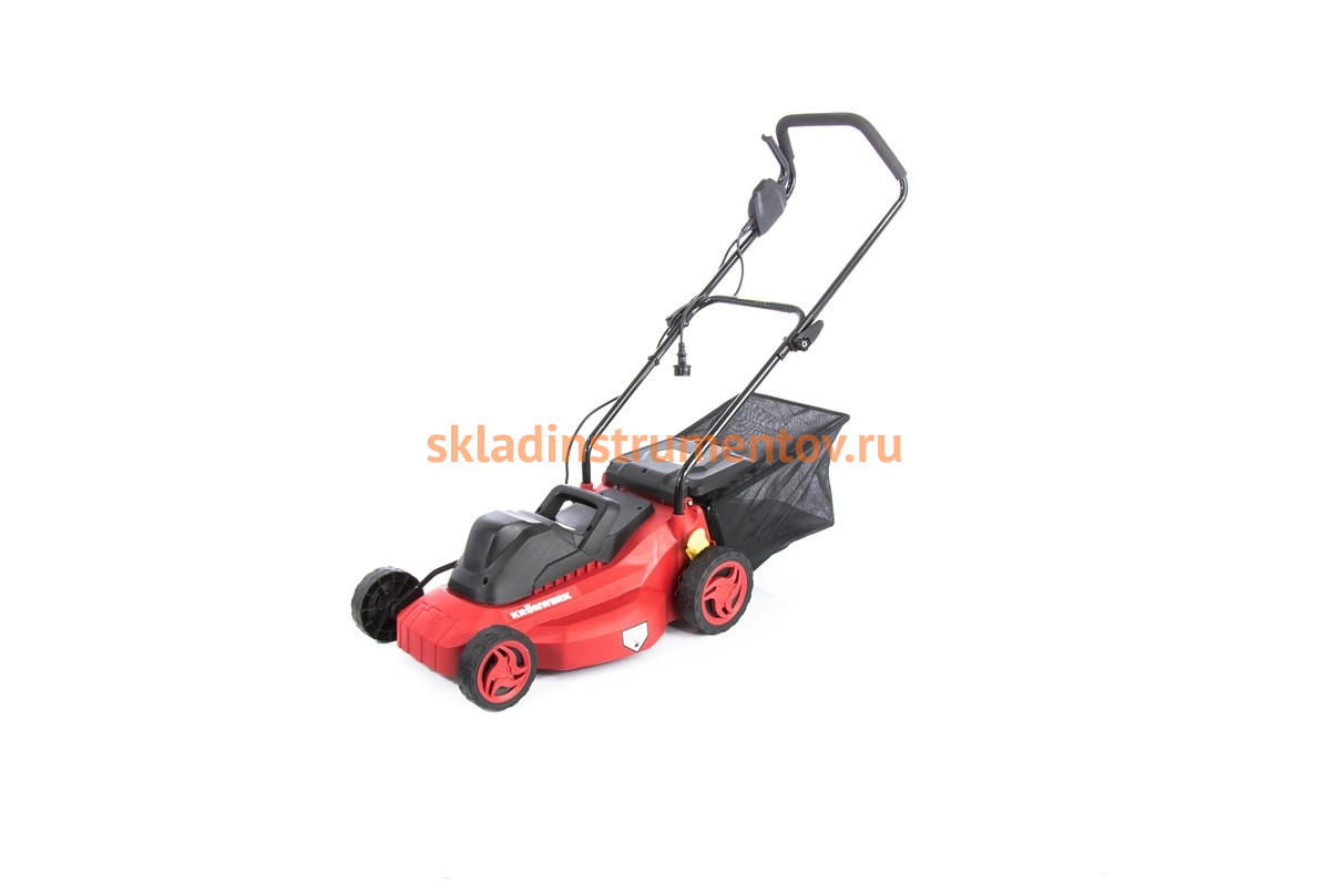 Электрическая газонокосилка KRONWERK EGC-1500 96604 используется для подравнивания травы на приусадебном участке.