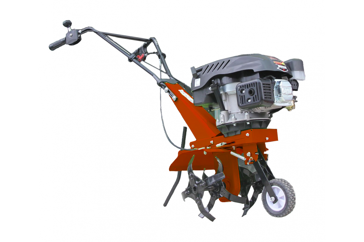 Оснащен 4-х тактным двигателем мощностью 5 л.с. Двигатель запускается с помощью ручного стартера.