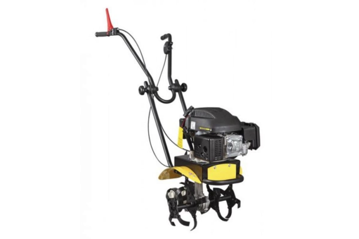 Культиватор оборудован 4-тактным двигателем Loncin с верхним расположением клапанов мощностью 4 л.с. Рукоятка регулируется под углом, что делает использование агрегата более комфортным. В комплект поставки входят транспортировочные колеса, что способствует облегчению перемещения культиватора по рабочей площадке.