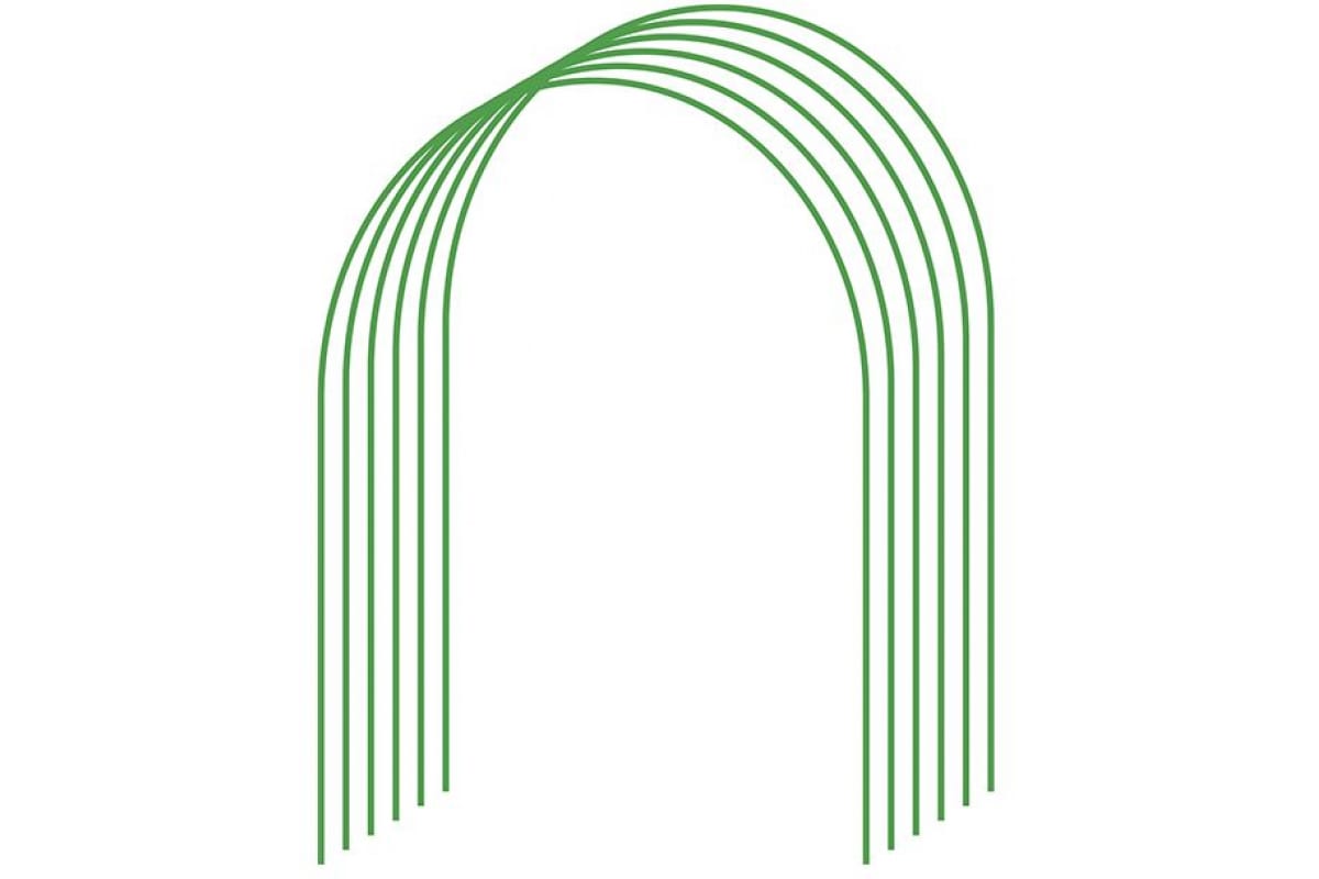 Дуги для парника Grinda 2.0 м, 6 шт. 422309-100-070 расчитаны на длительное использование. Изготовлены из стальной трубы Ø10 мм и защищены от коррозии. Используются с укрывным материалом для защиты сельскохозяйственных растений. В наборе 6 трубчатых дуг.
