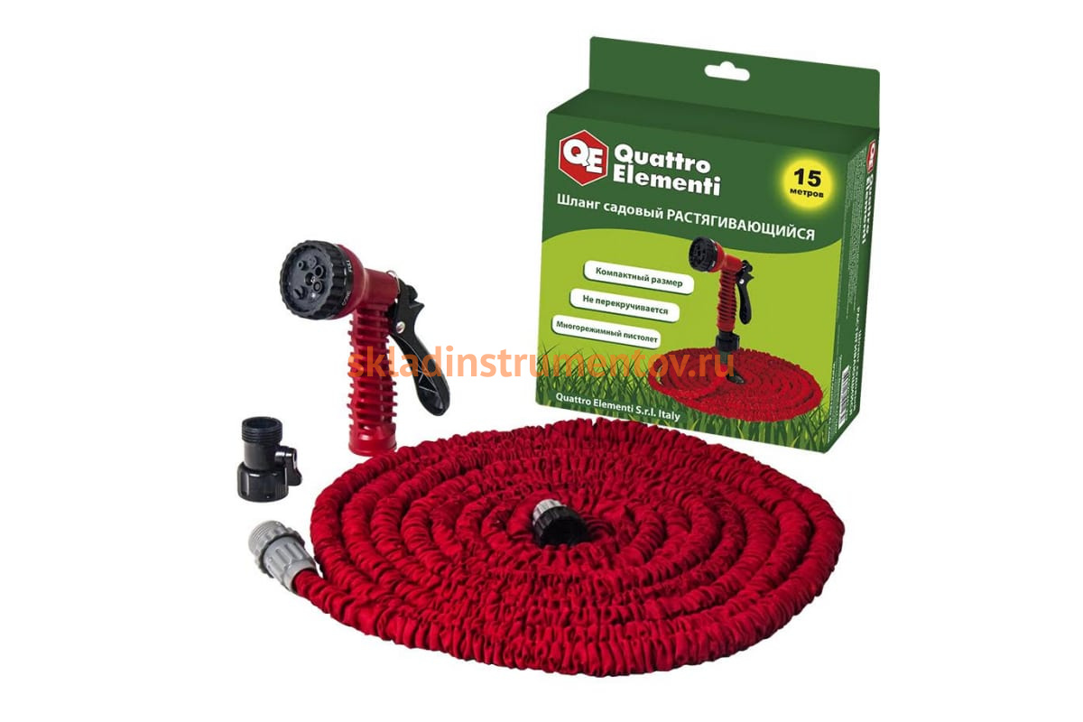 Шланг садовый растягивающийся QUATTRO ELEMENTI 241-239 предназначен для подачи воды к месту полива. Основа шланга изготовлена из латекса, благодаря чему он не перегибается, легко принимает первоначальную форму после полива и удобен для хранения. Оснащен многорежимным пистолетом для полива. Внутренний слой изготовлен из искусственного латекса, внешний чехол – из полиэстера.