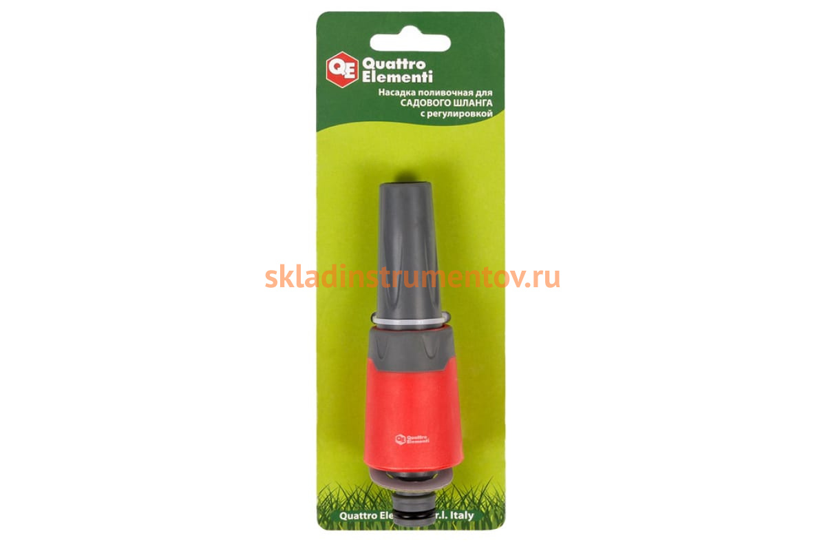 Насадка поливочная QUATTRO ELEMENTI 646-102 является составной частью быстросъемной соединительной системы QUATTRO ELEMENTI и используется для полива и орошения. Приспособление выполнено из пластика с покрытием из термопластичной резины, для максимального удобства при использовании. Есть возможность регулирования напора струи воды легким поворотом конца насадки. Подключается к шлангу с помощью соединителя, который приобретается дополнительно.