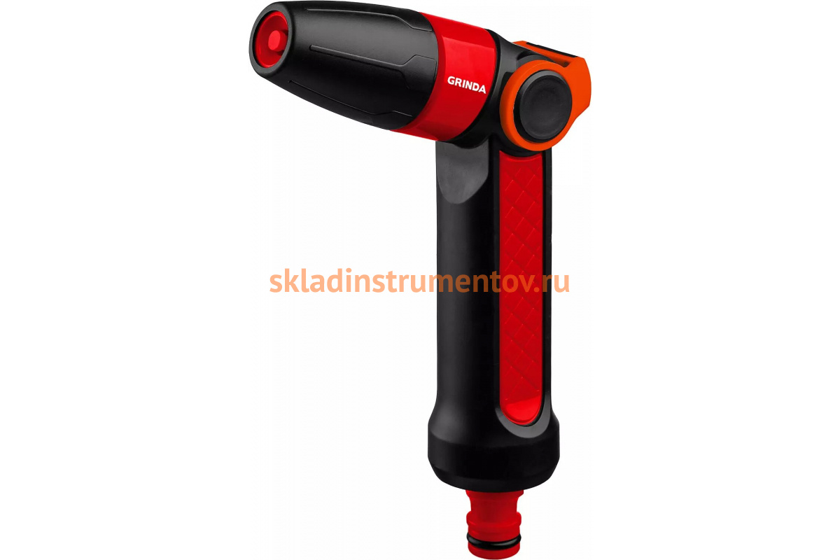 Поливочный пистолет GRINDA N-R с регулятором напора 8-427189 используется для орошения дачного участка.