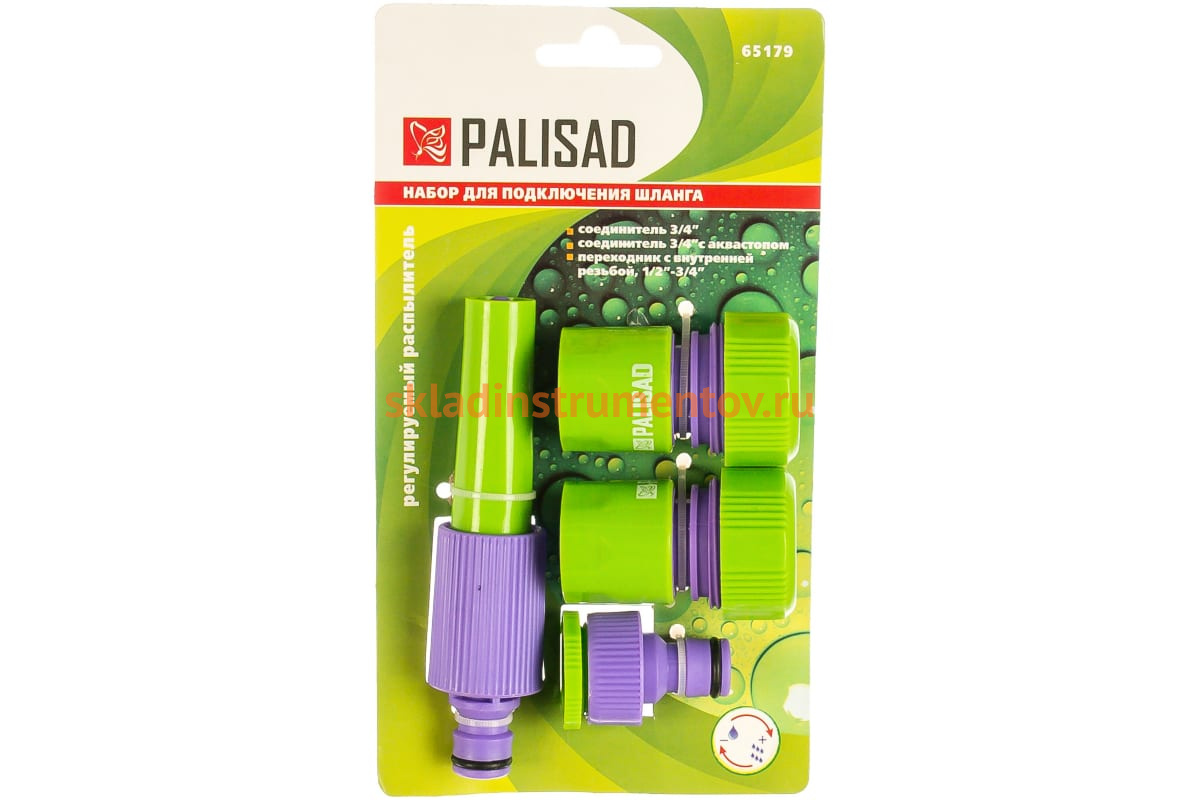 Набор PALISAD 65179 применяется для полива растений при подключении к поливочному шлангу 3/4". Является незаменимым помощником в саду и на даче. Все элементы набора выполнены из высококачественного ударопрочного АВS-пластика, устойчивого к воздействию влаги. Распределитель оснащен регулируемой форсункой, имеющей 3 режима полива: жесткая струя, распыление типа «туман», конусное распыление. Это позволяет выбрать наиболее подходящий тип распыления для различных растений. Быстросъемный соединитель 3/4" позволяет быстро подсоединять или отсоединять шланг через адаптер-переходник. В комплект также входит быстросъемный соединитель 3/4" с функцией "аквастоп", которая блокирует поток воды при отсоединении поливочного наконечника, предотвращая вытекание воды из шланга.