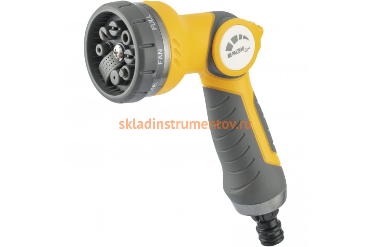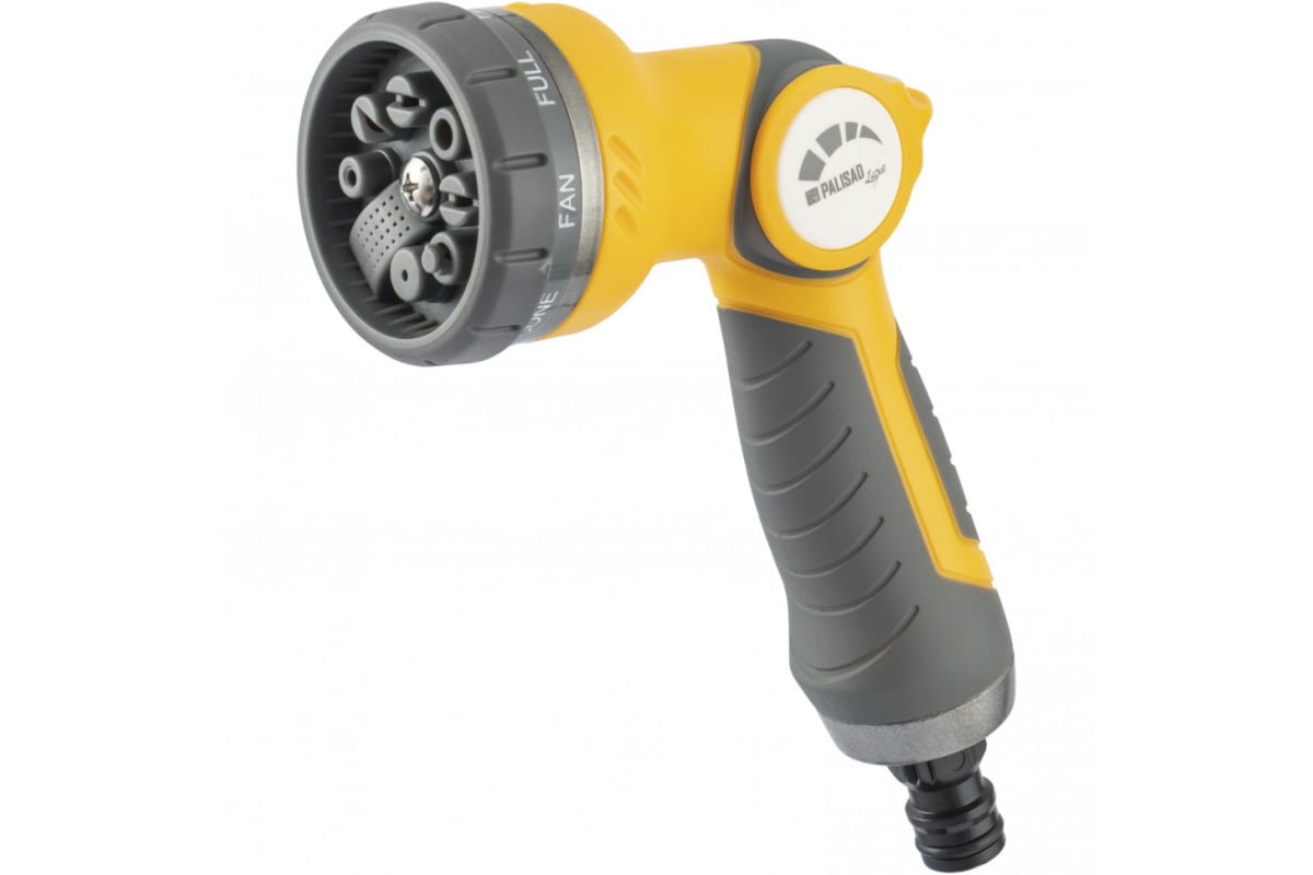 Регулируемый пистолет-распылитель PALISAD ERGO, LUXE 8 режимов 65145 удобно лежит в руке.