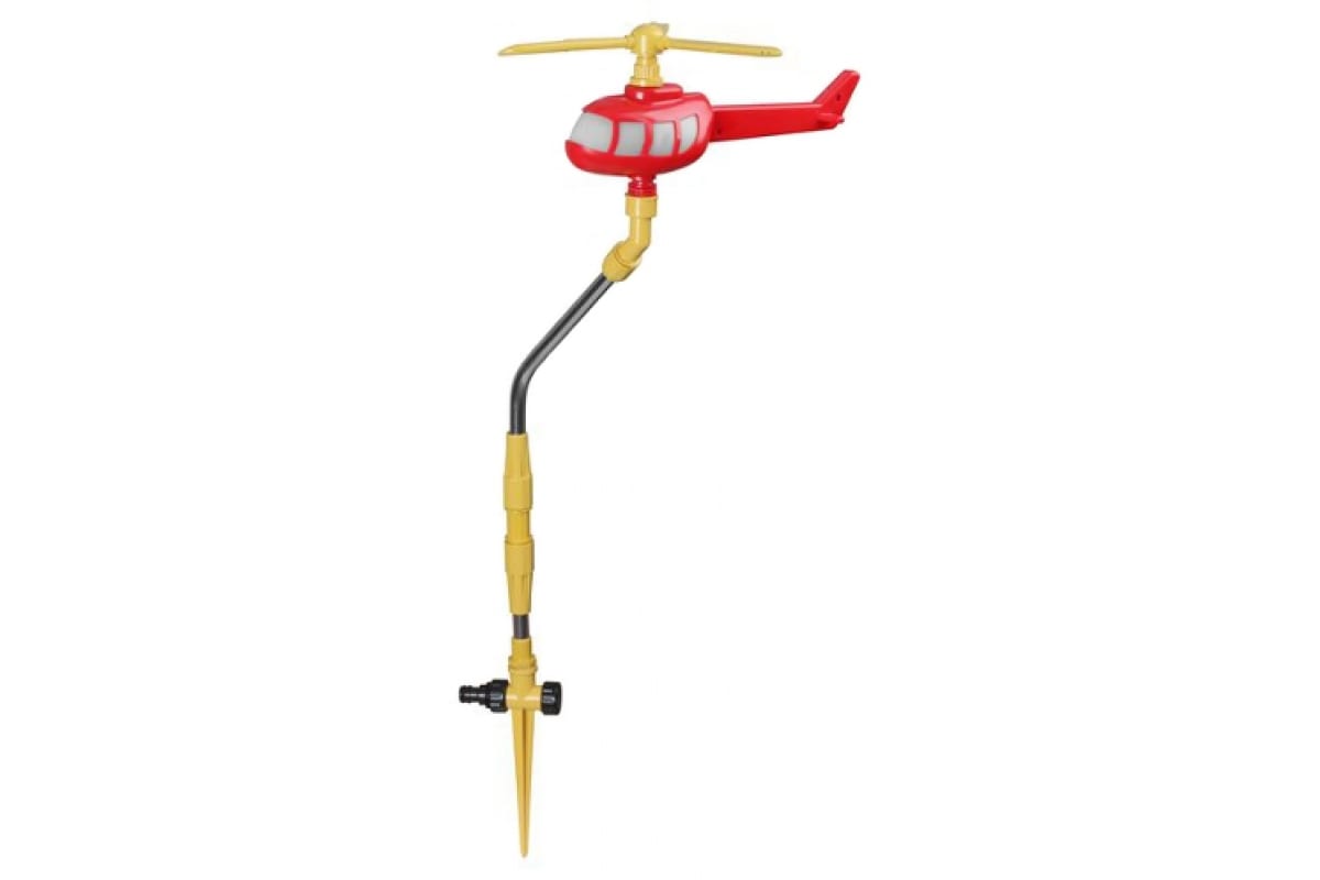Распылитель Grinda 8-427623 используется для полива растений. Под напором воды распылитель, выполненный в форме вертолета, вращается во все стороны на 360°. Устойчивую фиксацию в почве обеспечивает пластиковая пика. Распылитель обеспечивает равномерный полив территории. Два соединительных гнезда предназначены для использования его в цепочке из нескольких распылителей.