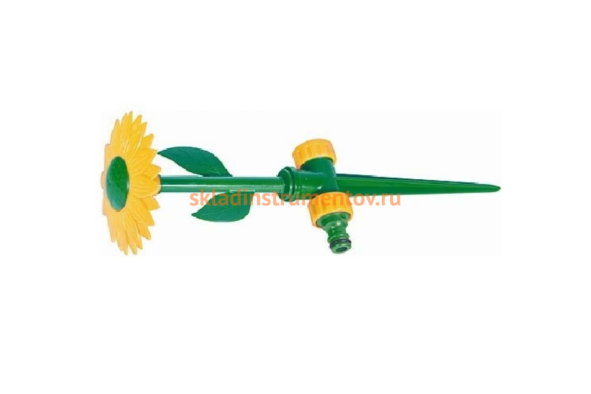Пластиковый разбрызгиватель на пике "Подсолнух" PALISAD MATRIX 65423 предназначен для стационарного полива на садовых, дачных, приусадебных участках, в парках, скверах и т.д. Изготовлен из прочного пластика, имеет штуцерную посадку и штырь-пику для надежной фиксации в почве. Выполнен в виде цветка-подсолнуха, в центре которого радиально располагаются 44 форсунки. В процессе работы устройства создается эффект душа, благодаря которому обеспечивается равномерный круговой полив площади до 50 кв.м.