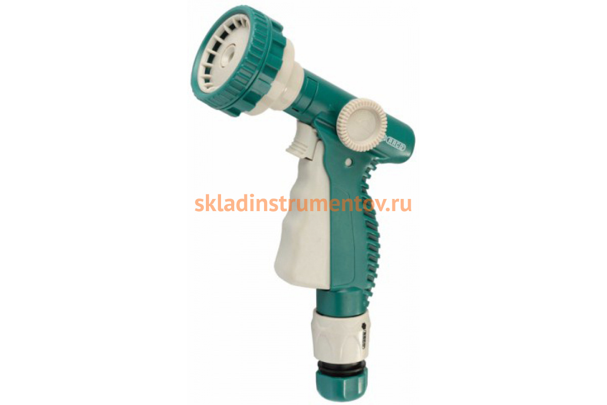 Пистолет-распылитель RACO 4255-55/537C используется в качестве насадки на шланг для полива почвы. Пять режимов подачи воды позволяют выбрать нужный, в зависимости от поставленной задачи. Большой курок с фиксатором предназначен для неутомительного продолжительного полива.