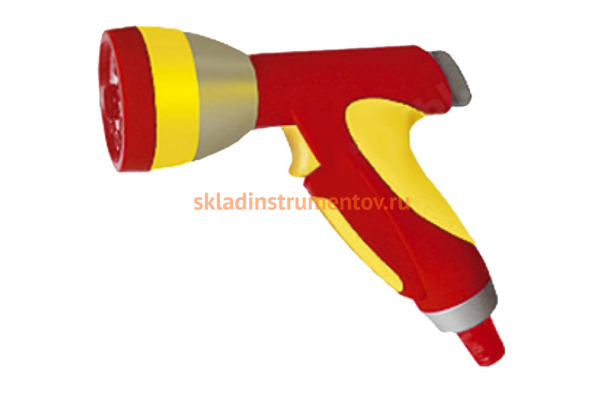 Пистолет-распылитель "EXPERT" GRINDA 8-427145_z01 пригодится на садово-огородном участке. Предназначен для направленного полива и орошения садовых растений, кустов и деревьев на садовом участке. Подсоединяется к шлангу через соединитель. Пистолет-распылитель Гринда предоставляет возможность выбора одного из 7 режимов распыления путем вращения наконечника: сильная струя, конус, круг, плоская струя, душ, аэрирование, слабая струя. Фиксатор струи значительно облегчает работу, достаточно выбрать нужный режим полива и нажать курок, он зафиксируется автоматически. Для прерывания полива необходимо нажать на кнопку, расположенную над курком. Эргономичная рукоятка сделает работу не утомительной, а прочный корпус обеспечит длительный срок службы.
