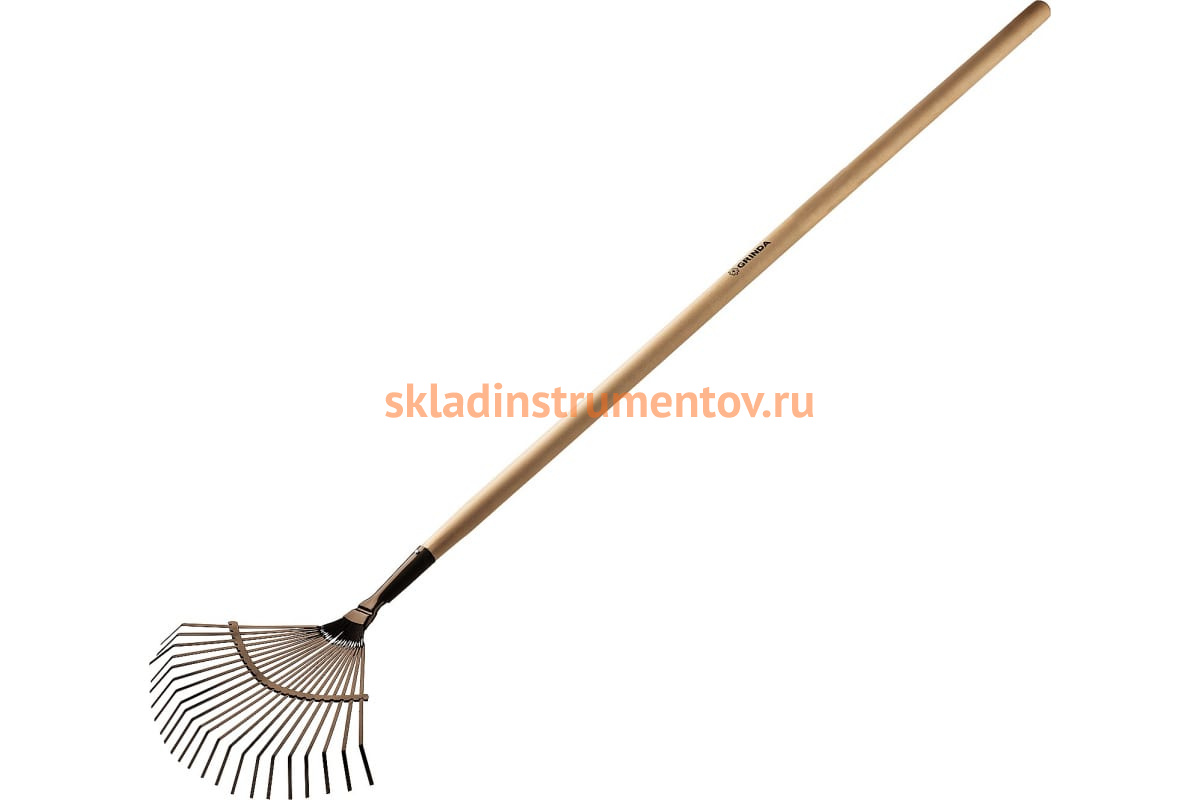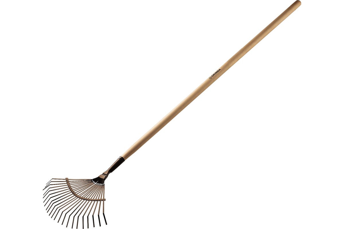 Веерные садовые грабли с деревянным черенком GRINDA 22 плоских зубца, 440х260х1500 мм 39593 служат для уборки скошенной травы, опавших листьев и другого мусора с садово территории. Могут использоваться для выравнивания и рыхления почвы на грядах и клумбах. Пружинистые зубья, согнутые под углом, позволяют работать на неровной поверхности. Грабли укомплектованы деревянным черенком, благодаря чему инструмент полностью готов к использованию.