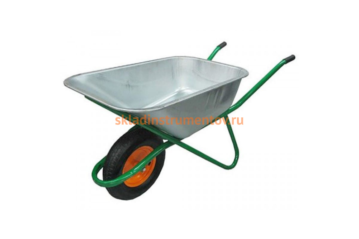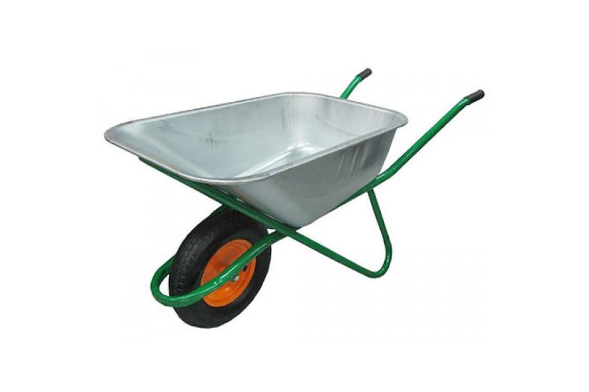 Одноколесная строительная тачка с пневмоколесом TOR 113ZP 1019514 подходит для перевозки грунта, песка и различных строительных материалов.